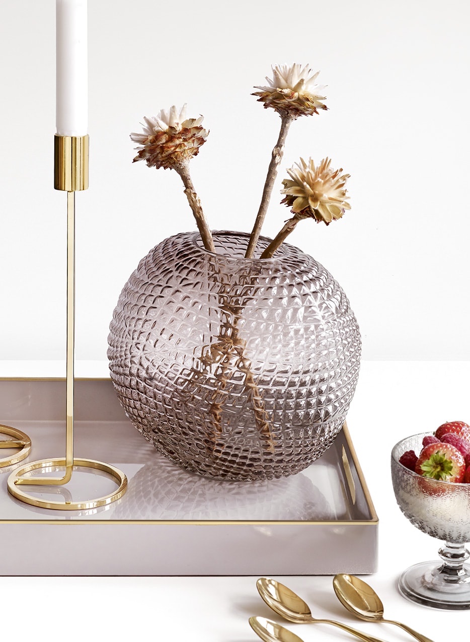 Den här VASEN i rökfärgat glas är så ljuvligt fin! Den MÅSTE jag ha! Så fint med hampagräs i eller kanske bara eucalypsus. Nedsatt med 110 kr nu.