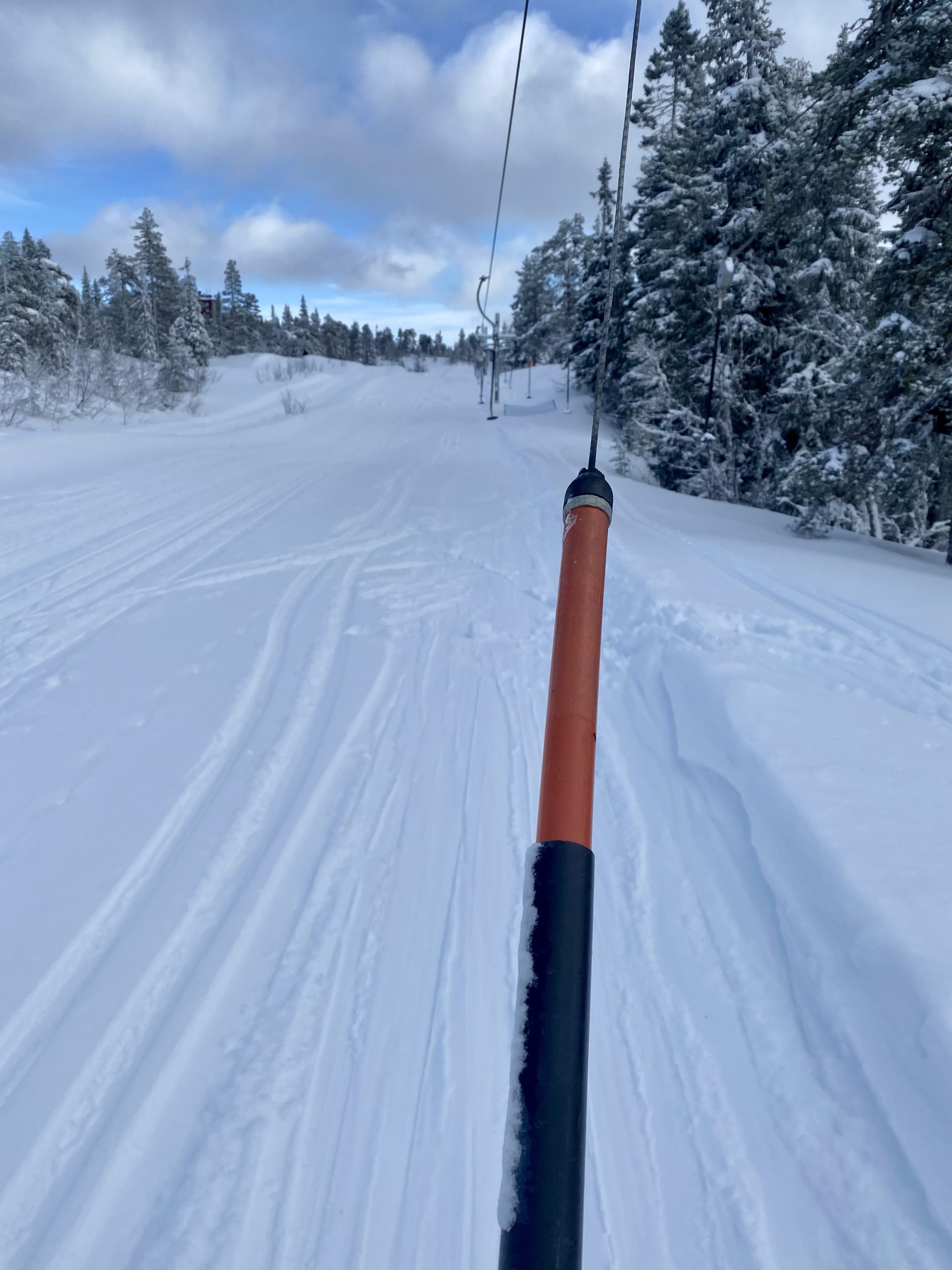 Skidåkningen har varit top notch på alla sätt. Både utför och på längden. Man är verkligen bortskämd med mängder av snö när man är där uppe. Här var vi på väg i transportliften till Högfjället.