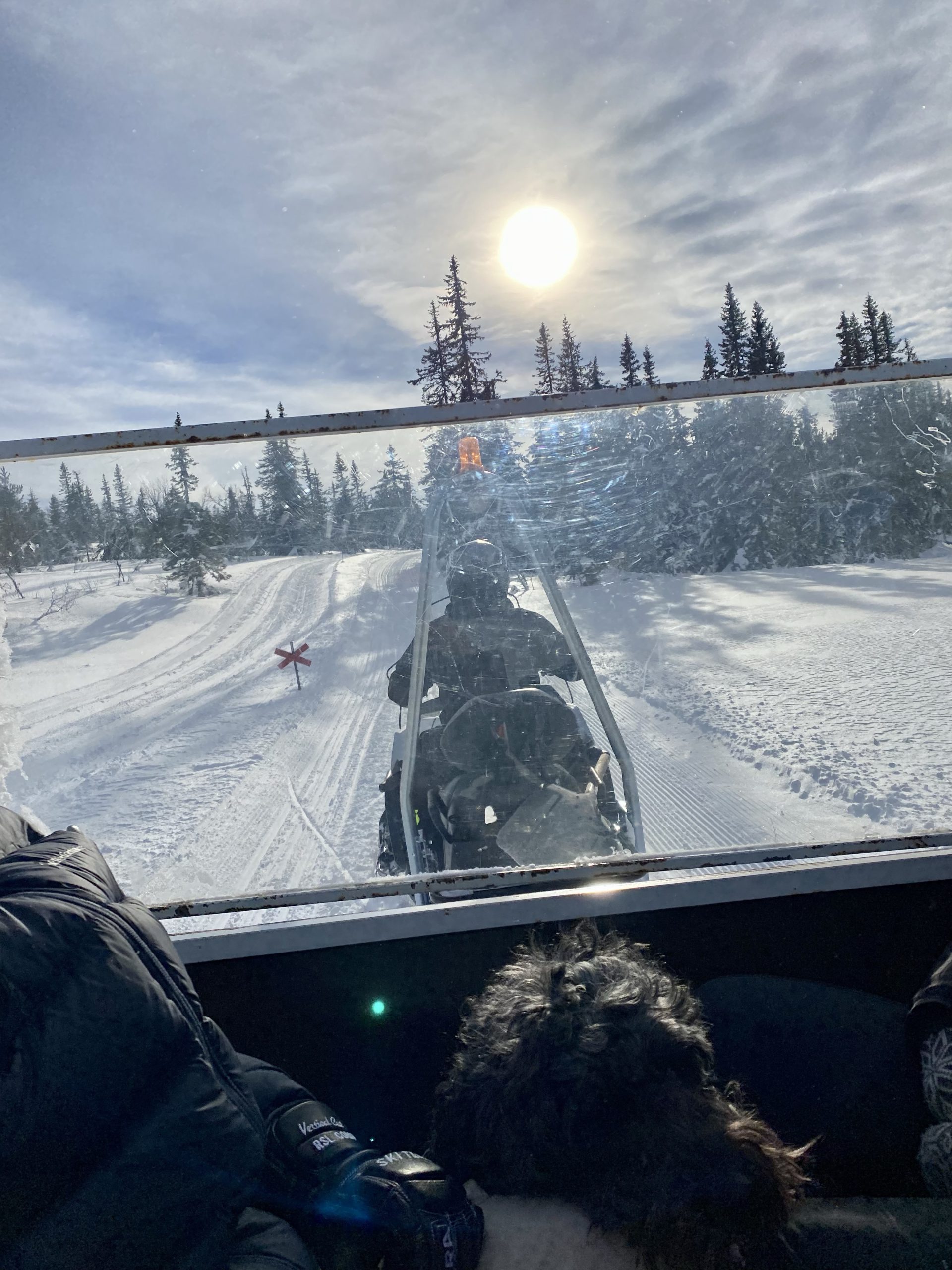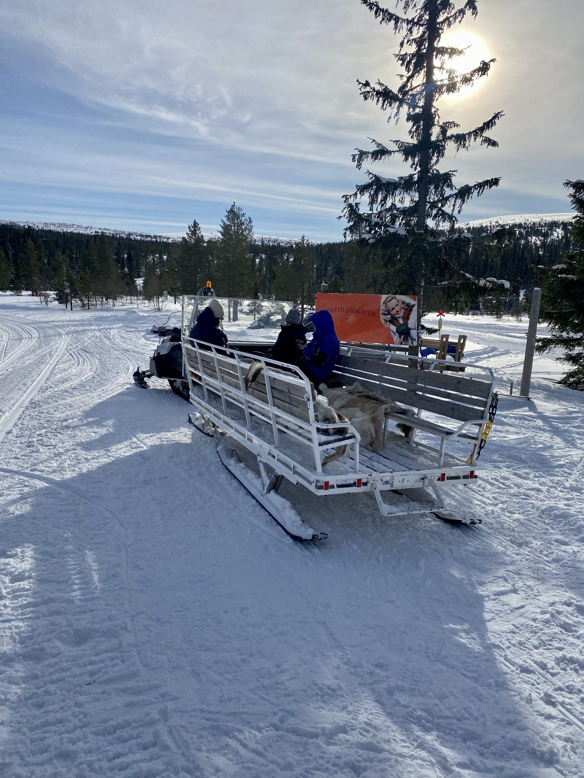 Klockan 11 hade vi bokat släde upp till Storfjällsgraven. Har bara hört talas om det då vänner tagit längdskidorna dit, skulle tydligen vara supermysigt. Släden upp var svinkall och blåsig. Fick värma Milo på vägen upp. Min jacka är verkligen så varm så den fryser man aldrig i tack och lov.