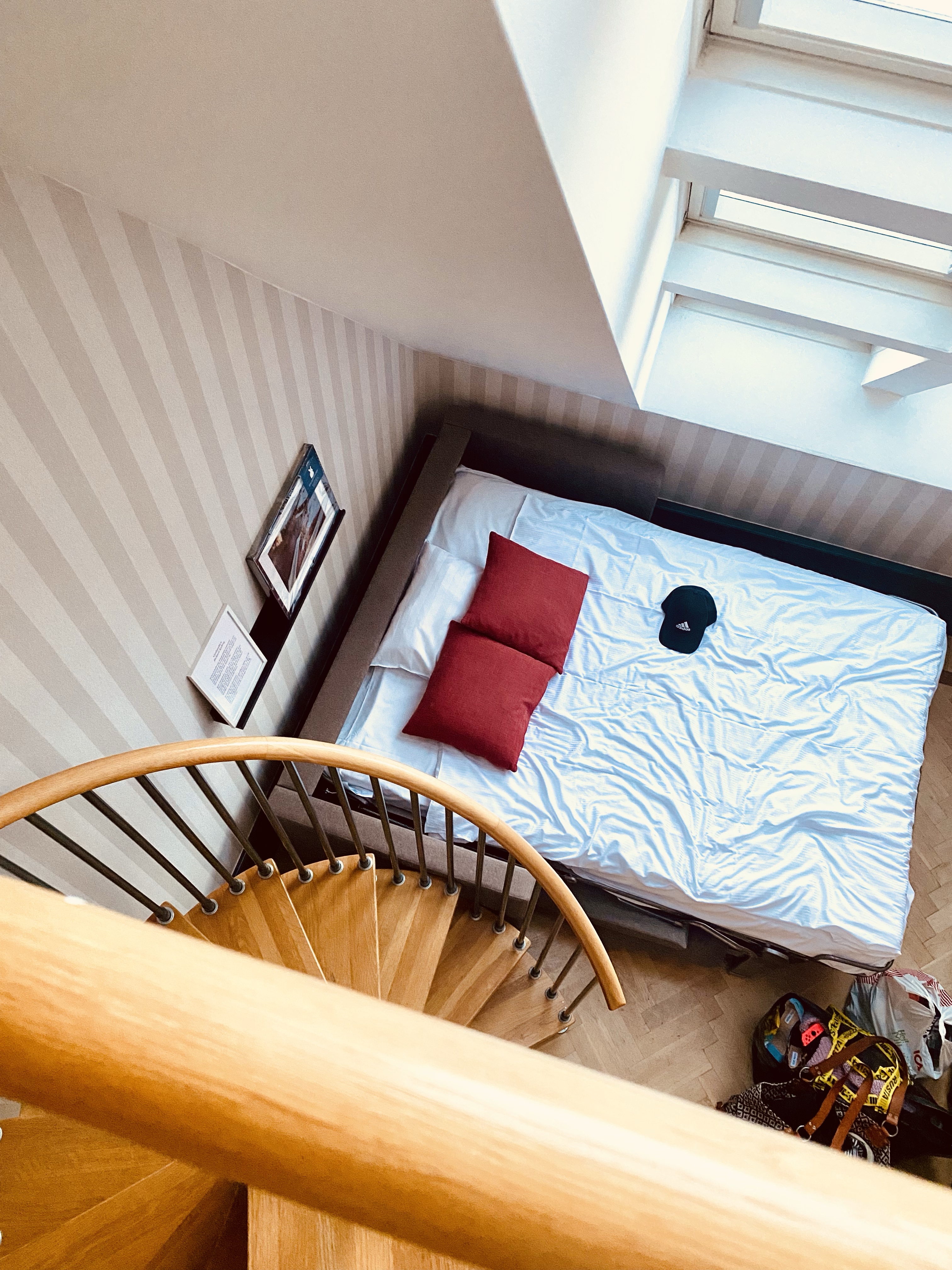 Älskar vårt rum. Bilden här ovan är tagen från våra takfönster. Vi bor på Clarion Wisby. Vårt rum har ett sovloft med dubbelsäng och en bäddbar soffa på nedervåningen. Älskar hotellet. Gjorde research innan vi åkte och tyckte detta lät toppen och bokade det. Idag ska vi prova spa:t då det ska regna här.