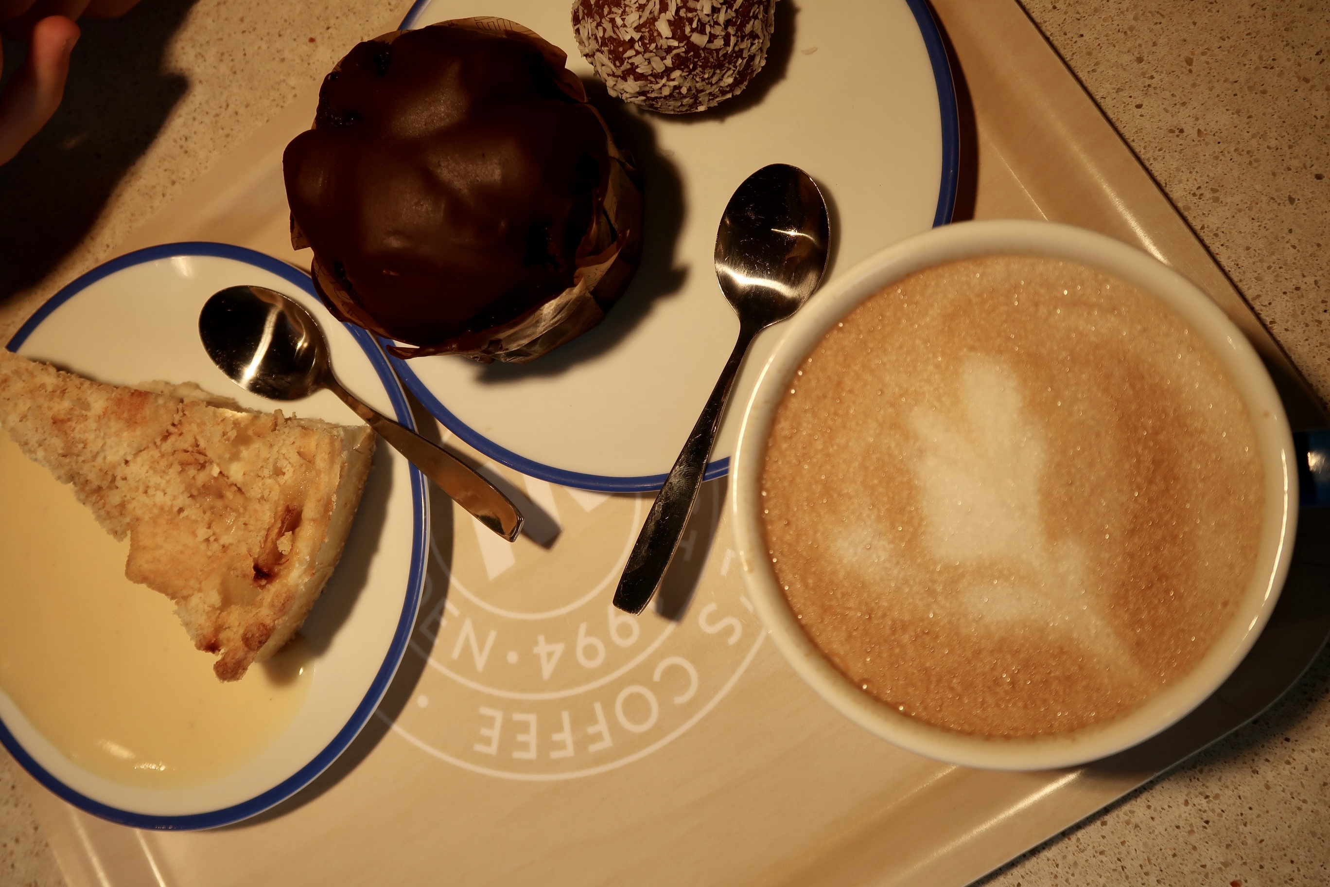 Efter lunchen och föredraget på hotellet for vi iväg för att hämta Milo och sedan ta en fika på Waynes. Jag är verkligen överlycklig över detta café alltså. Sååå gott koffeinfritt kaffe i en latte med havremjölk, hittills det enda stället i hela stan som serverar koffeinfritt kaffe. Finns det fler får du gärna tipsa mig.