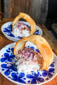 Västkustkrustader & Het räkröra i gemblad (<klicka för recept) – När du vill bjuda på två riktigt naggande goda tilltugg. En het & fräsch, en krämig och frisk.