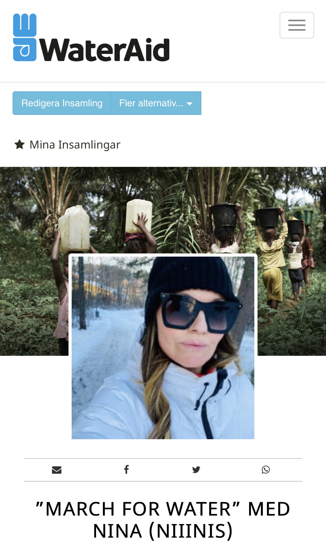 Jag har startat den här insamlingen för att jag engagerar mig i WaterAids kampanj March for Water och vill se till så flickor och kvinnor slipper gå i timmar för att hämta smutsigt vatten.