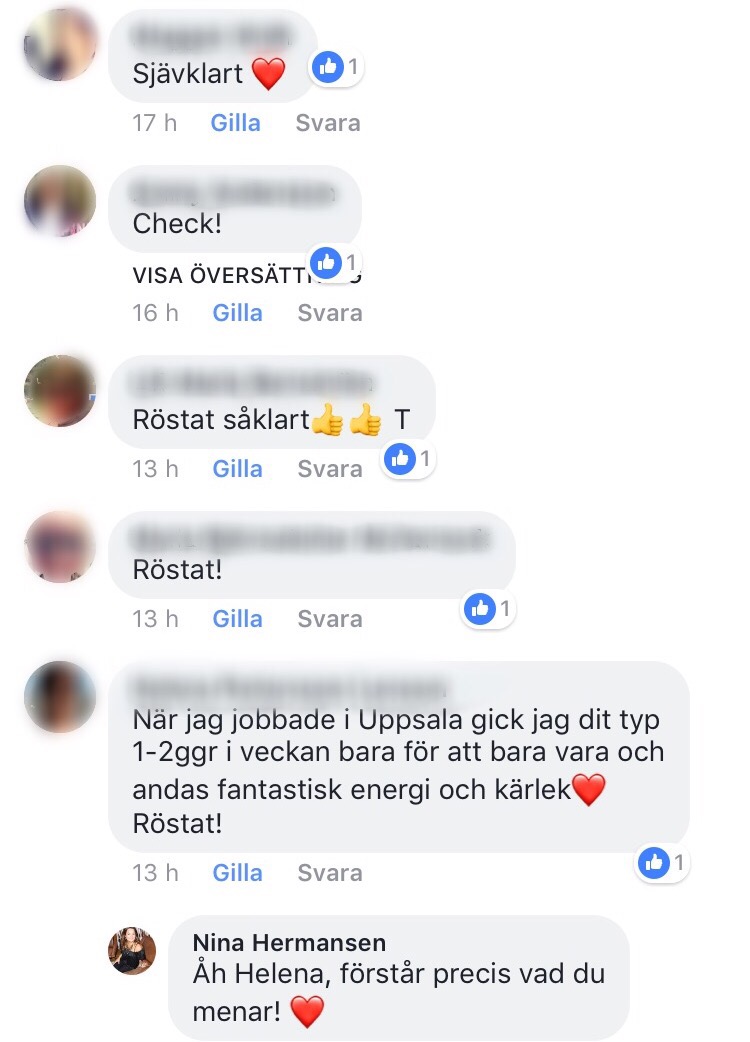 Igår gick jag i taket av lycka när hon lagt upp på sin Instagram att de blivit nominerade till BÄSTA SERVICE i Uppsala.com awards. Jag grät en skvätt för det här är liksom betalningen för allt jäkla slit. Sedan la jag upp den här vädjan på min FB.