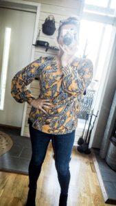 Paisley heter det va? Toppen hittar du klänning<< i samma mönster. Den såg superhärlig ut också! Älskar att den är draperad över magen, att den är omlott och ärmarna ska vi inte prata om!
