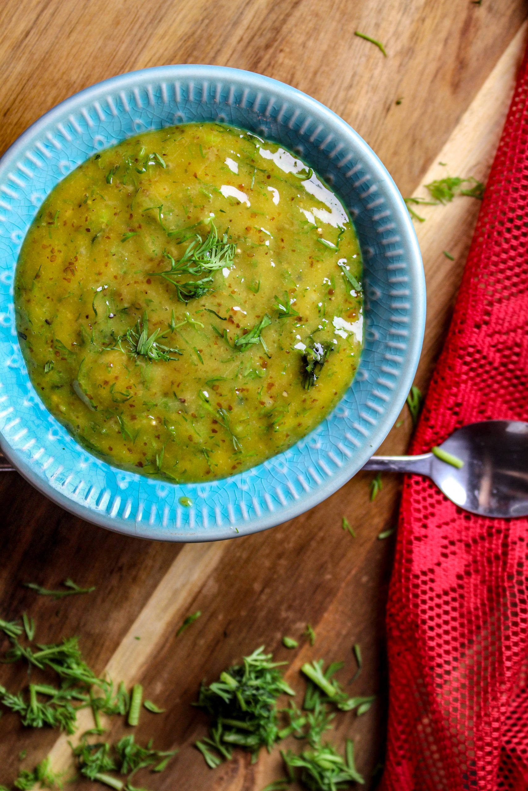 3) Till sist har du i lite vatten och och den hackade dillen. Rör om tills allt blandats ordentligt.