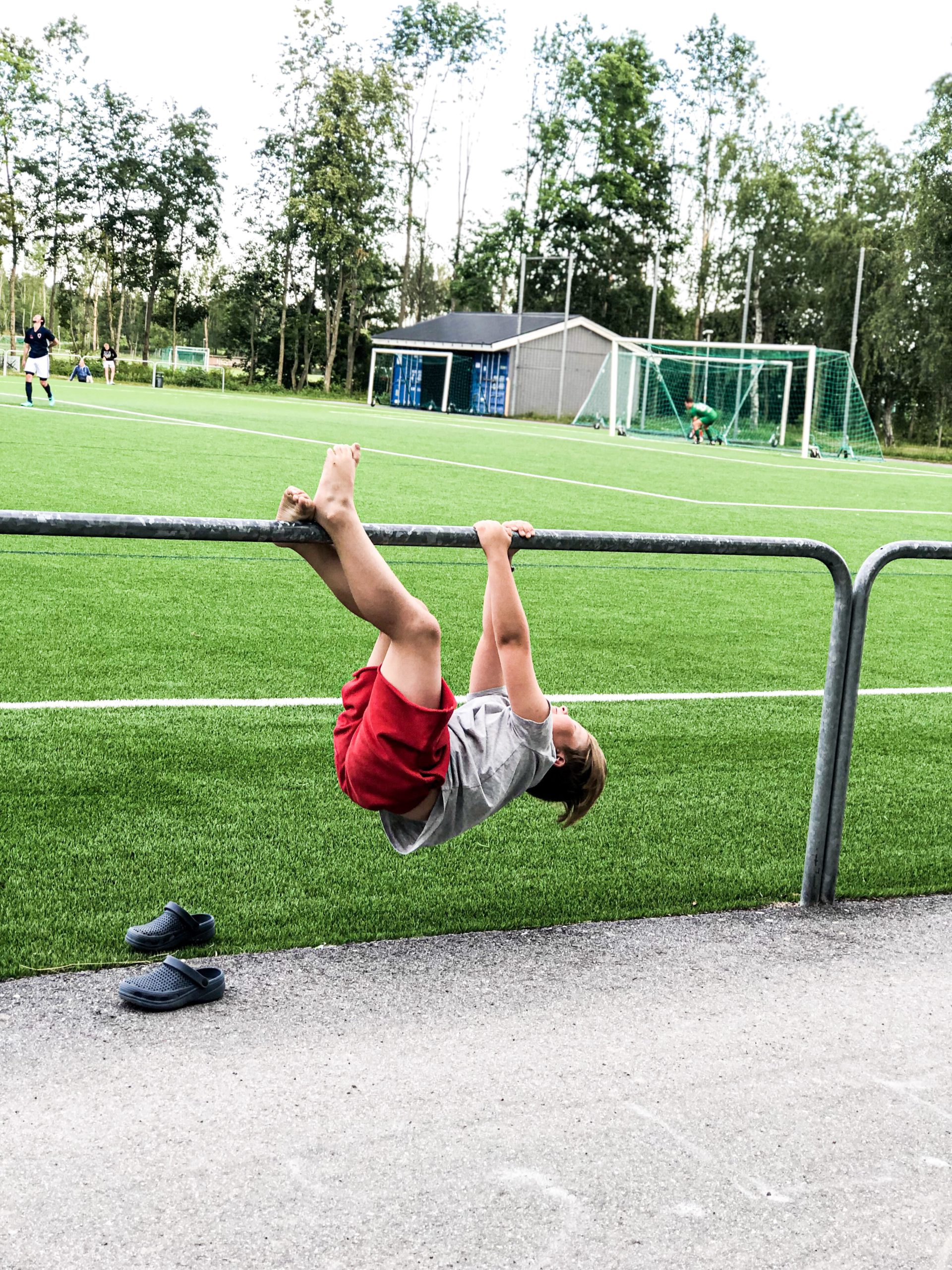 Bättre och dra en rova i den här istället. Minns ni när man höll på såhär som liten? Alltså….häng mig i en sån där och jag får hjärnskakning direkt. Skulle tappa taget och slå halvt ihjäl mig. På såna här rackare drog man ju snurrar liksom. Ett ben över så man hade stångfan i knävecket, den andra låste man det där andra benet med och sen kunde man snurra varv efter varv. Såå kul men hur i helskotta gjorde vi?