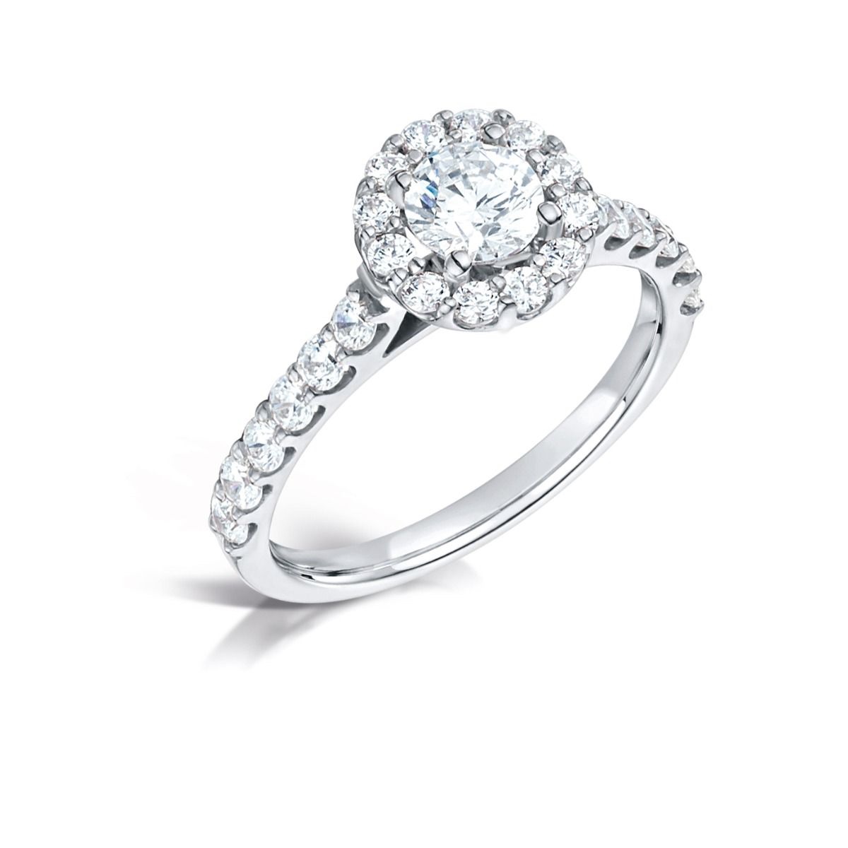Jag har en vigselring med en stor diamant och en förlovningsring som är täckt med små diamanter hela vägen runt….i en rad. Båda i vitt guld