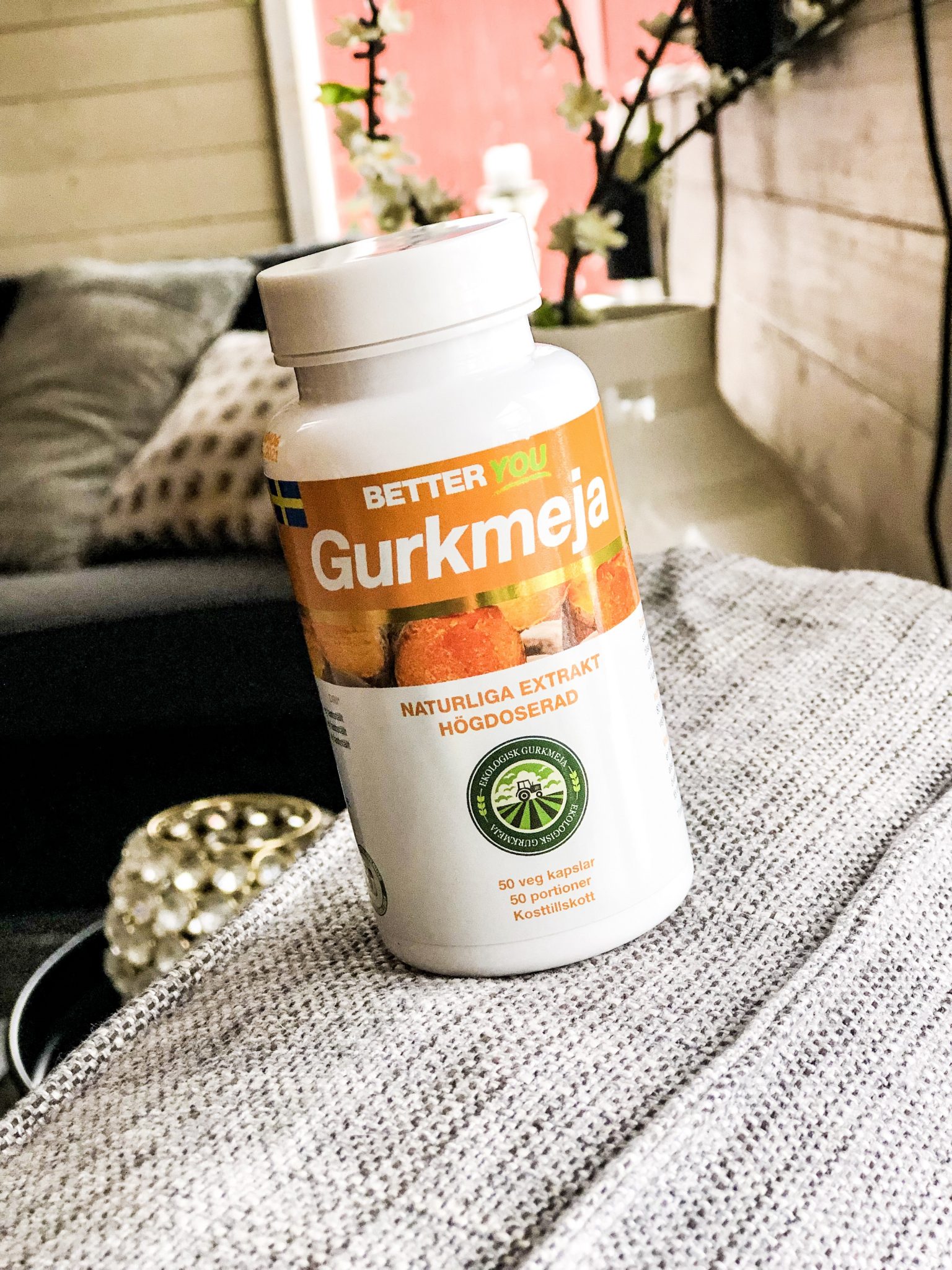 Här är den >>gurkmejan<< som jag äter! Det är en högdoserad variant som hjälpt mig otroligt mycket. Är så glad att jag började med den för skillnaden är verkligen enorm.