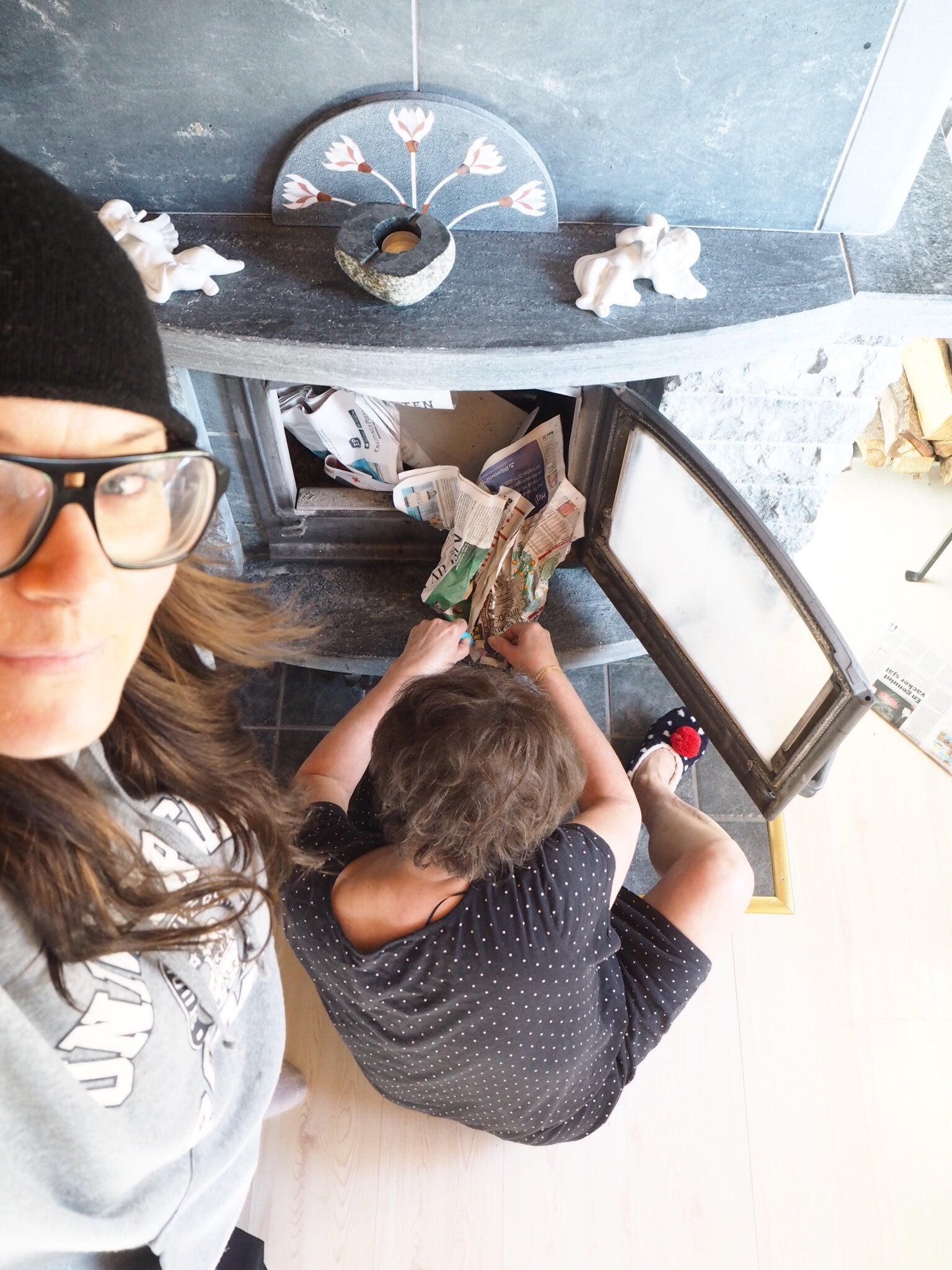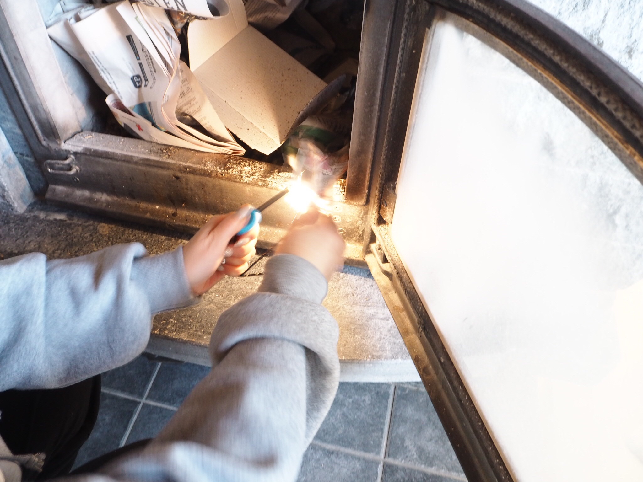 Mamma och jag var envisa som två åsnor tillsammans och SKULLE bara tända den där brasan med tändjärnet! Men Nope, det gick bara inte!