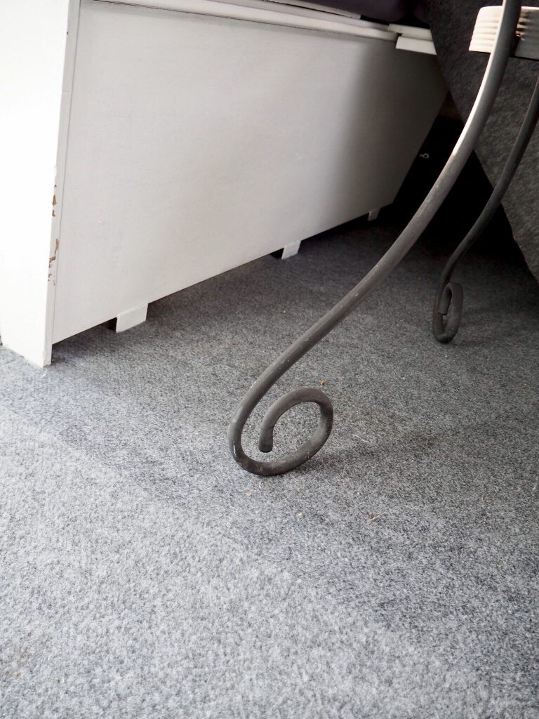 Sedan köpte jag nålfiltsmatta och la över hela golvet. Blev så himla bra! Tar bort lite av de kyliga golven och så är det mysigt att gå på.