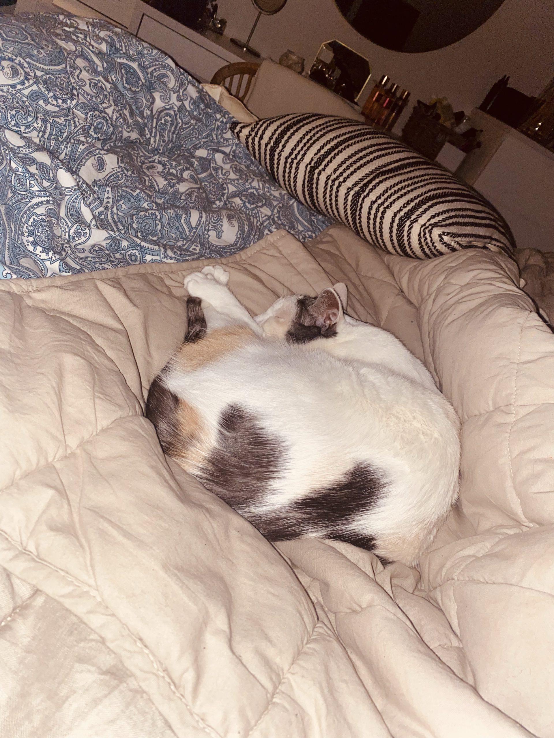 Kl 04:09 vaknade jag till efter att ha somnat om en liten stund. Jag låg under en bit överkast och katten hade tagit hela min plats i sängen. Var tvungen att ta en bild. Hon ligger by the way fortfarande där. Man är så jäkla hunsad av din egen katt, hon bestämmer. Ja tills jag ruttnar och stöter ut henne mot kanten, då blir hon sur som fasen och blänger snett på mig halva morgonen.