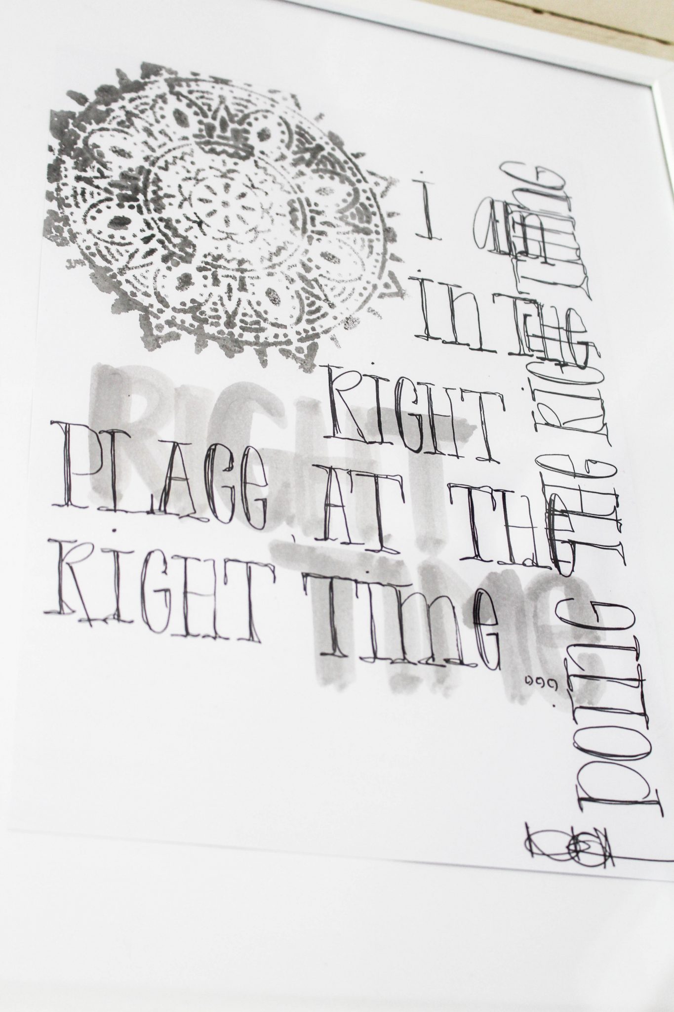 Den här texten på tavlan ovanför lyder: ”I´m in the right place in the right time doing the right thing”. Det här är så jäkla bra alltså…. betydelsen är att du gör det du ska göra, perfekt tänk för oss kontrollmänniskor, det är ändå så mycket saker man inte kan påverka i livet…. Tänk om jag orkade tänka så oftare? Får se om jag får igång hemsidan här alldeles snart?