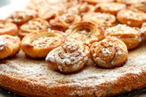 Först ut är denna galna kanelbullekladdkaka med små minikanelbullar uppepå.