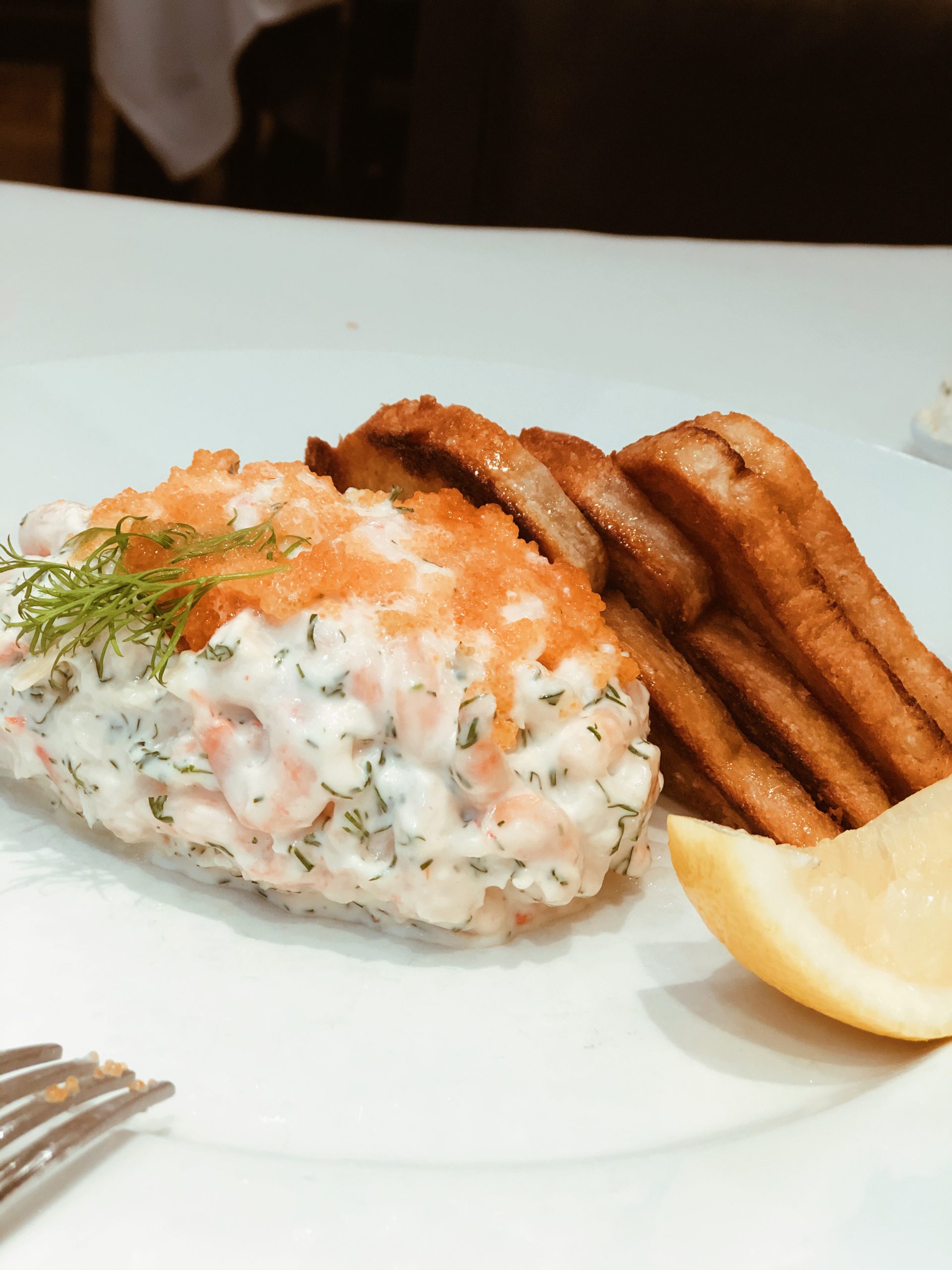 Tony åt en stor Toast skagen och jag en bakad spetskål med ostronskivling som var så sjukt god! Vad vi njöt. Vi har blivit så bra på att njuta av matupplevelse vi, att sitta och verkligen njuta av mat är helt vår grej.