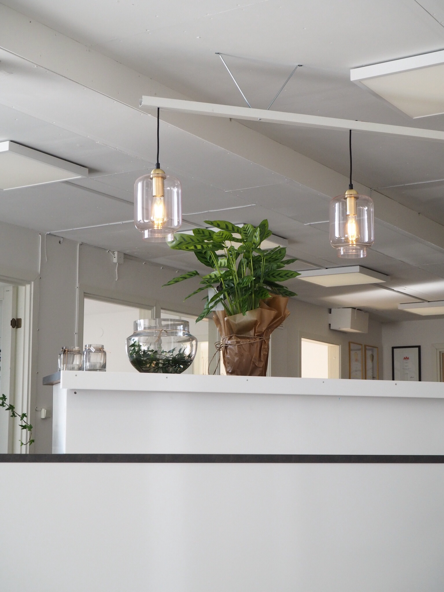 Så fräscht och snyggt överallt. Älskade lamporna ovanför disken, dom var från Ellos tydligen. Älskade de stora maffiga krukorna också, såna där lätta som knappt väger något du vet.
