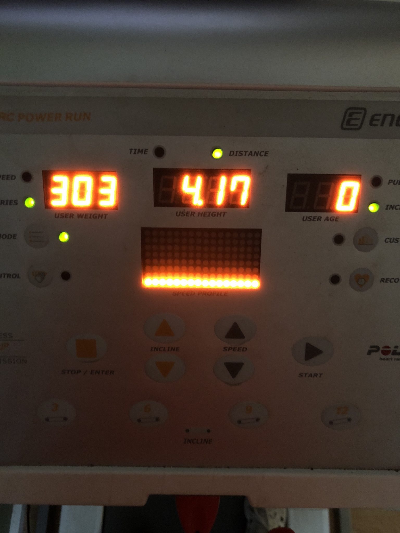 Här var mitt pass denna veckan. Måste ändå säga att det var väl själva fan vad svårt jag har att få till det nu? Jag är för trött på kvällen och nu när löpbandet står i Elliots rum (innan vi får hit en hjälparsenal som kan få upp den i ”träningsrummet”) så kan jag inte använda det på morgonen när han sover. Tänk att man lyckas hitta ursäkter ändå…..
