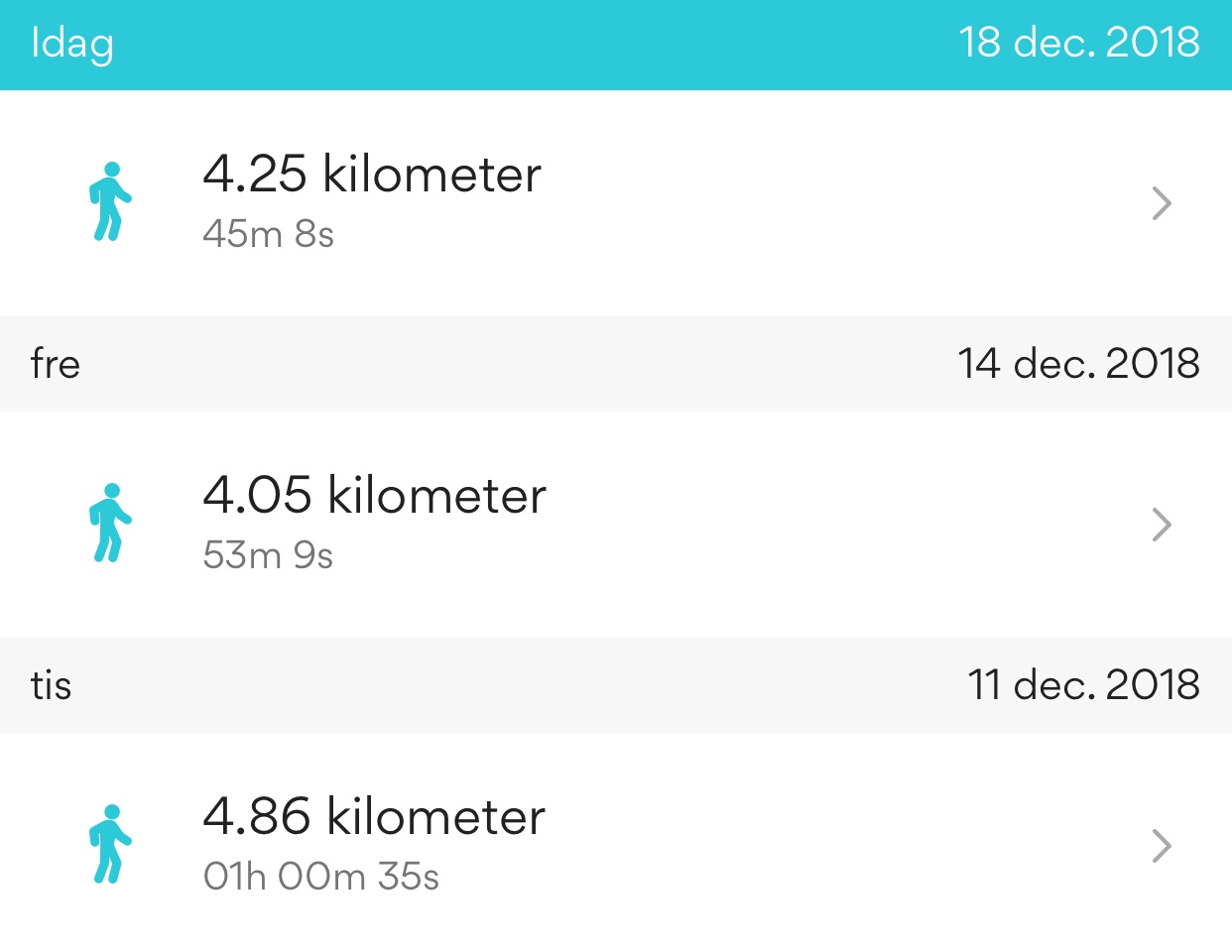 Jag har börjat gå lite längre på vägen till och från jobbet med start igår. Det ger mellan 15-20000 steg/dag. Senaste veckan ligger jag dock på att snitt på drygt 12000 steg/dag. Har börjat logga mina måltider i lifesum och sett att jag faktiskt oftast äter för lite.