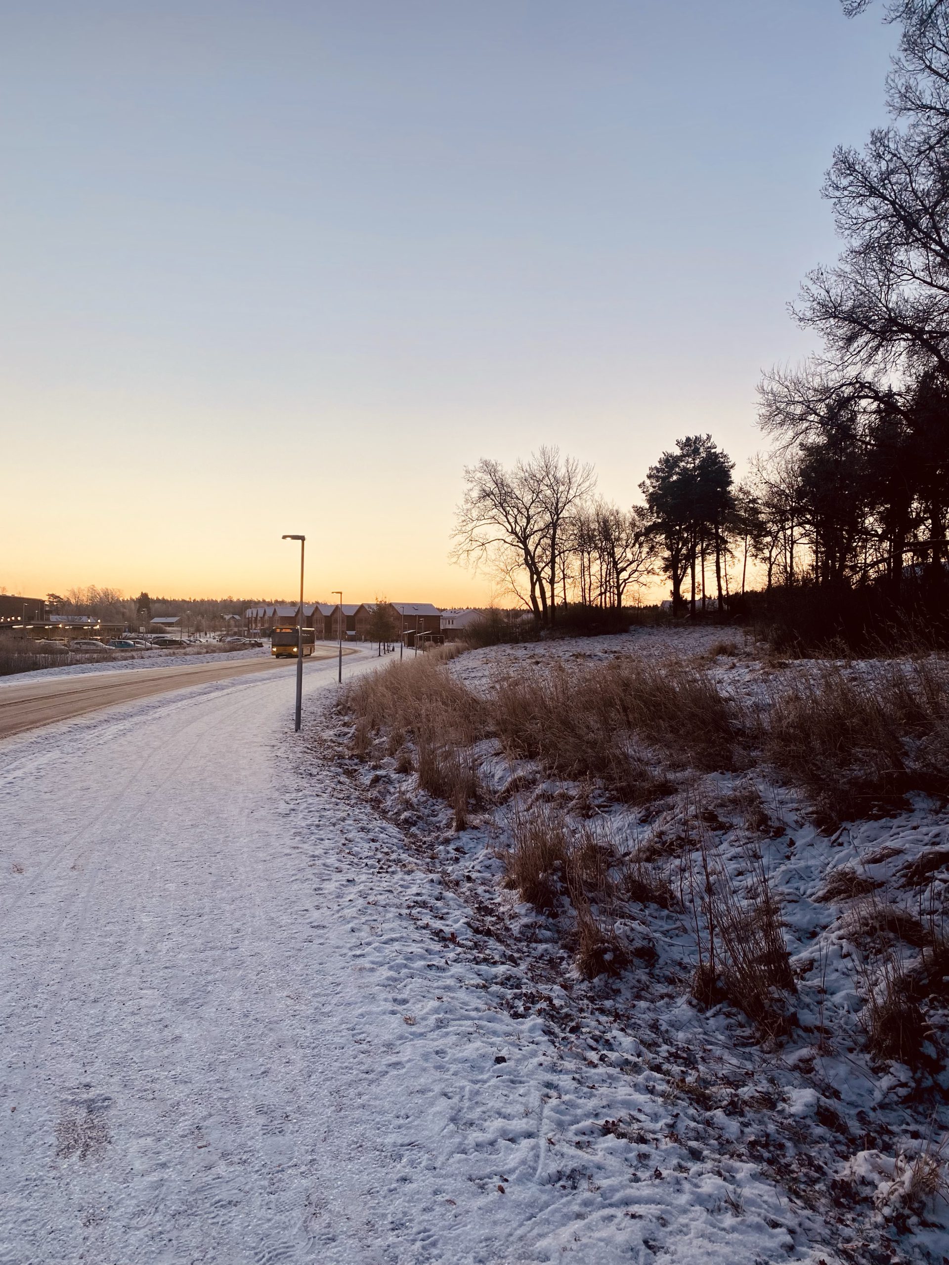 Jag drog upp mitt ansiktsskydd så bara lite av ögonen syntes. Så skönt i all kyla. Kondensen från min andning gjorde dock så ögonfransarna frös. Haha…. Såg roligt ut. Det var en väldigt vacker promenad. Så krispigt och fint vinterväder. Vi har inte så mycket snö hos oss, det har mer eller mindre bara färgat backen vit. Men det räcker för att det ska kännas ljusare.