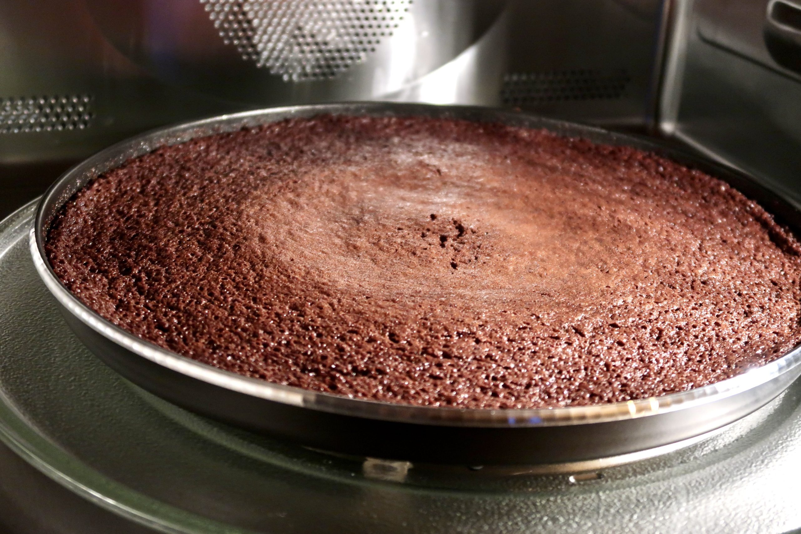 Här stod jag och väntade spänt utanför mikrovågsugnen, såg att det började bubbla uppepå så det såg lovande ut.
