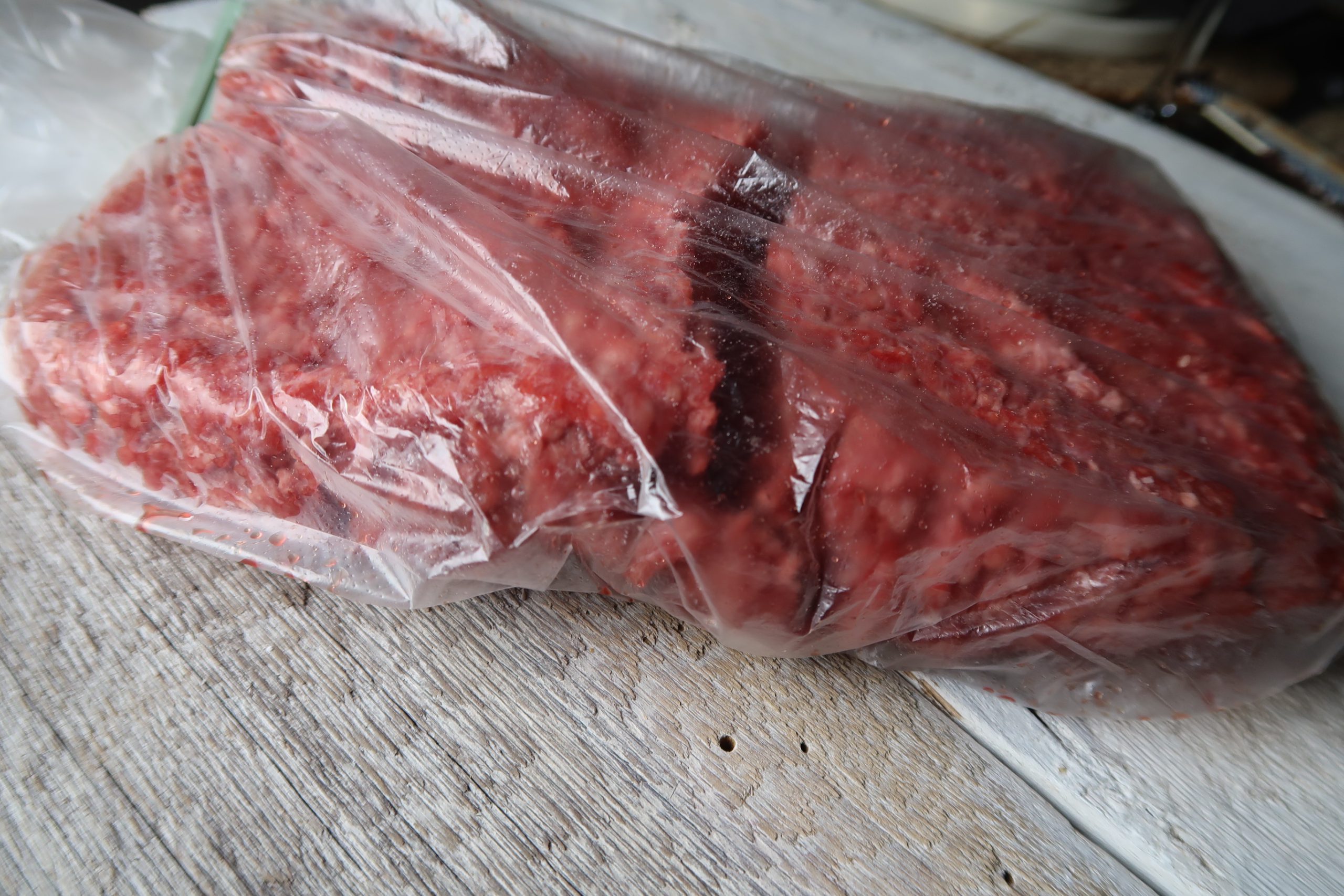 Här har ni den djupfrysta köttfärsen. Den väger ca 800 gr.