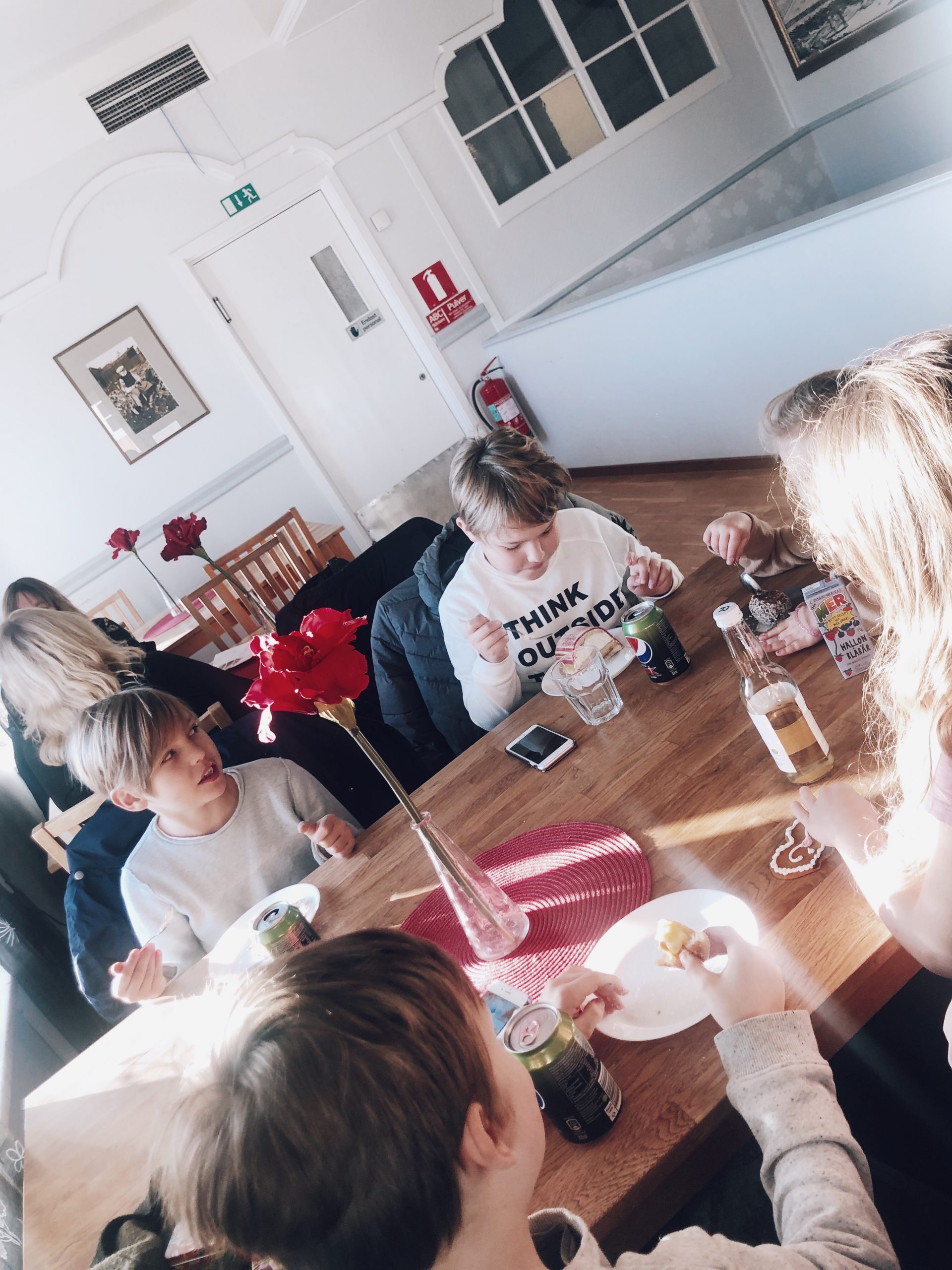 Kidsen hade eget bord och vi vuxna vårt eget. Så roligt när vi ses nu, Milo har kusinkompisar som han stortrivs med.