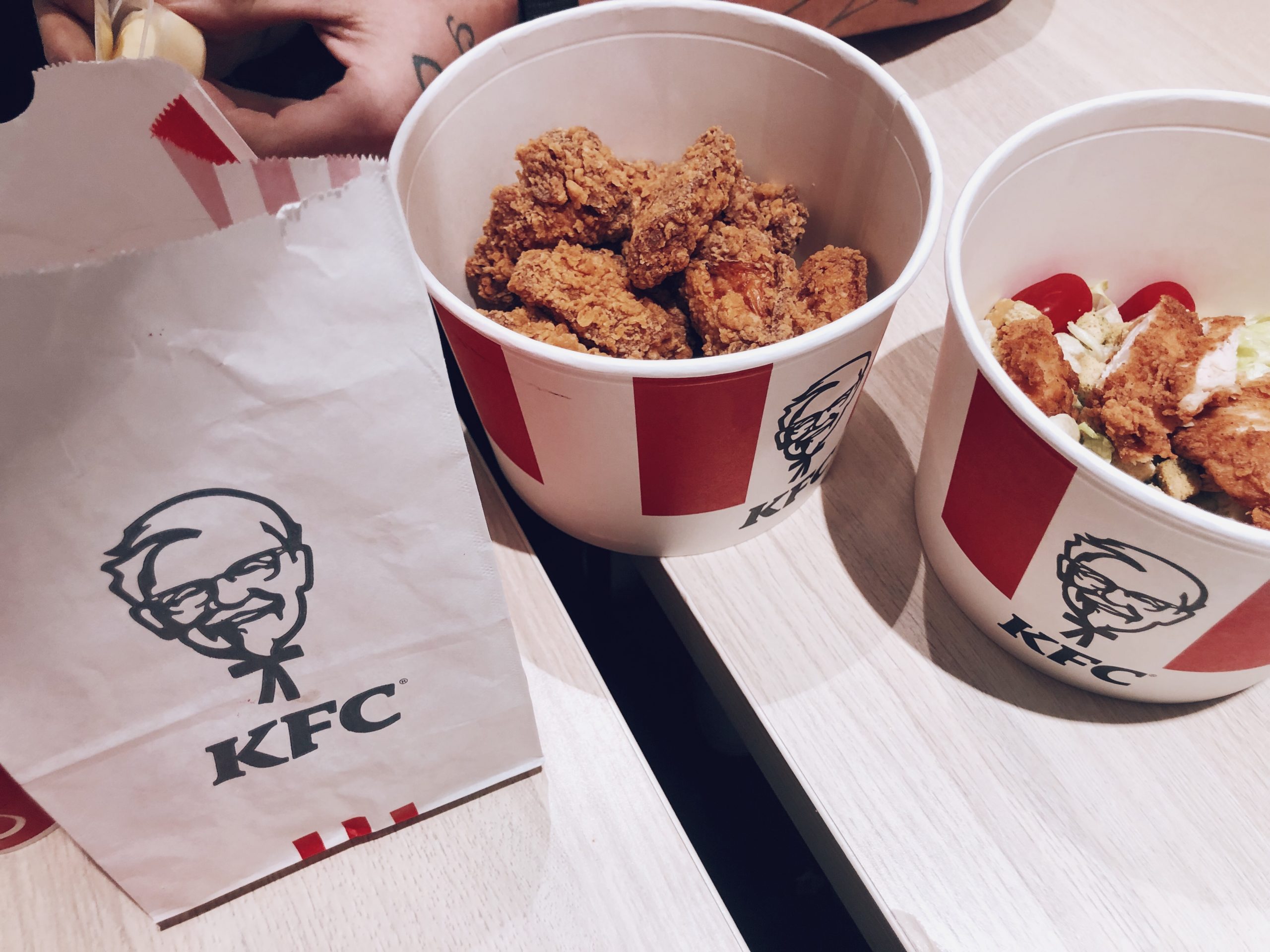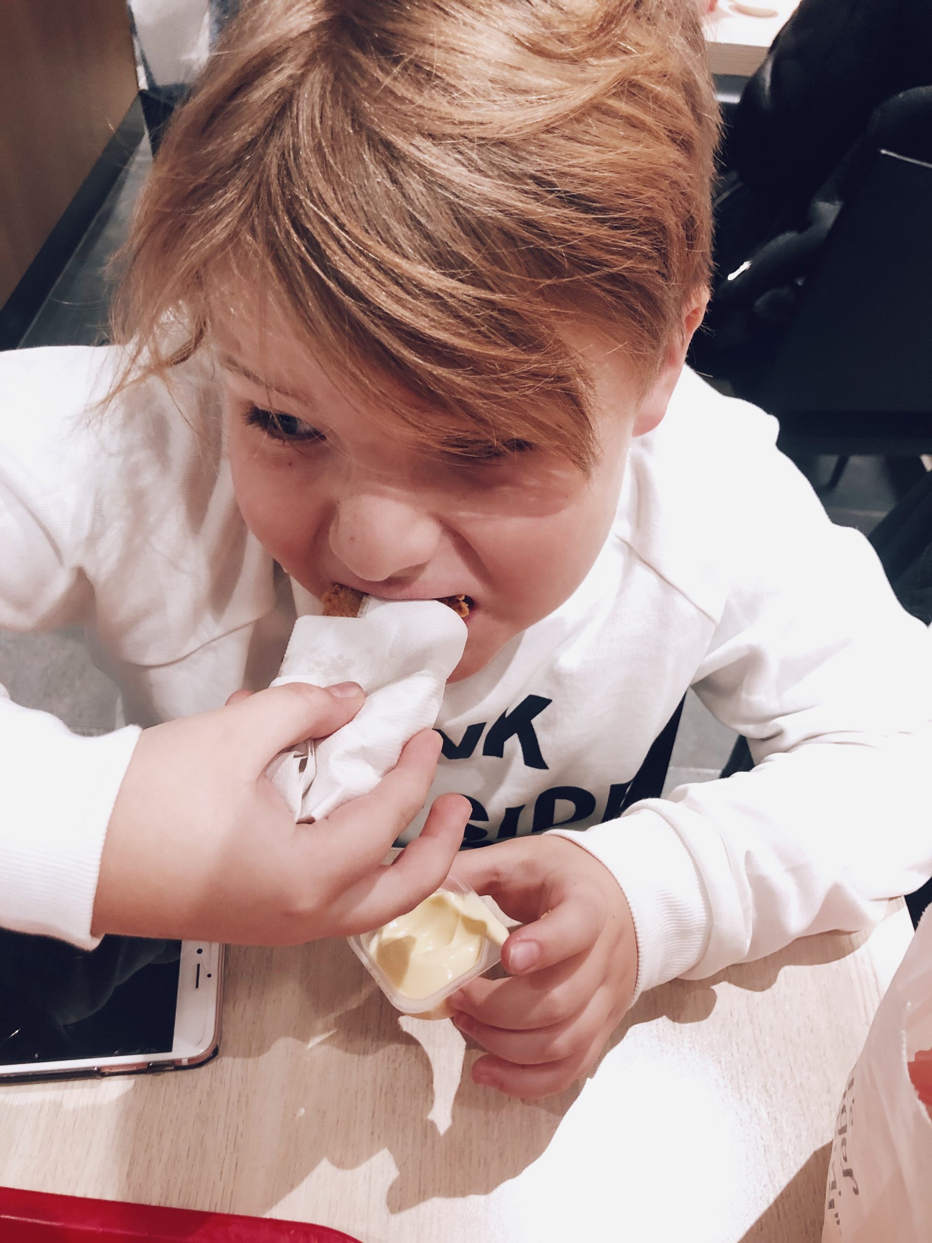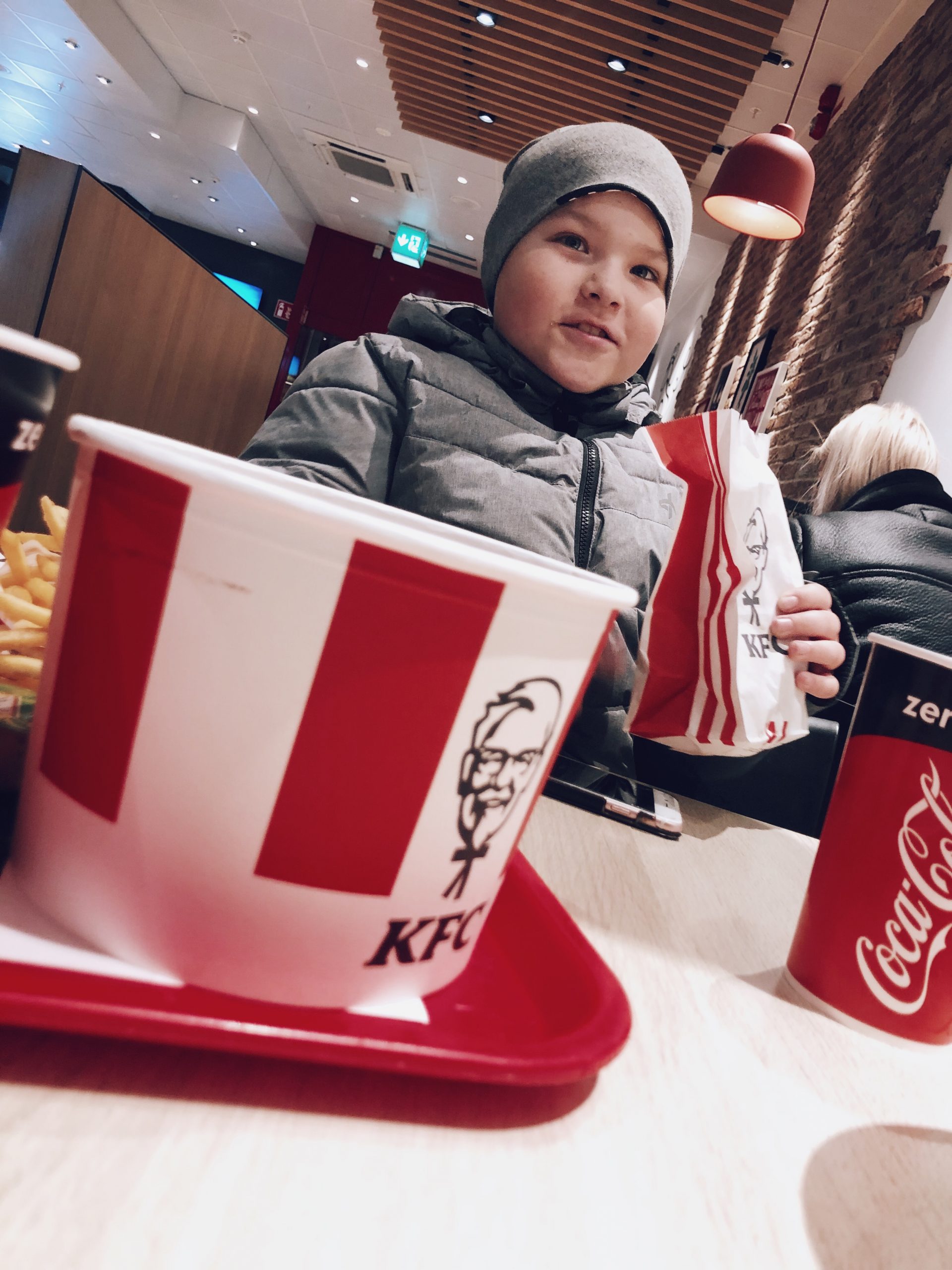 På vägen hem stannade vi till på KFC. Milo har önskat att få äta där nångång och igår var då första gången. Milo och Tony gottade sig rejält, jag tog en sallad som var sådär. Men det gick i i alla fall.