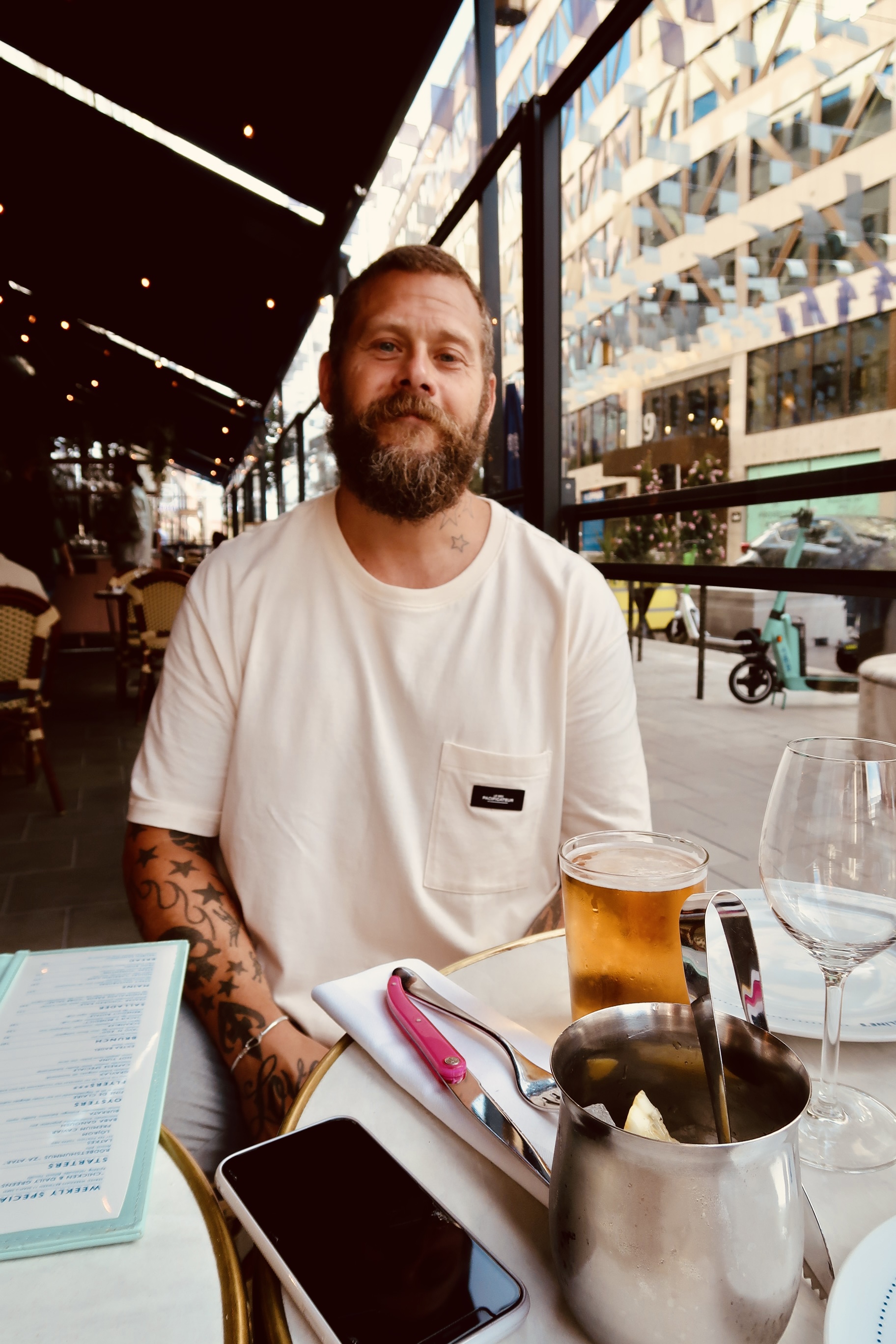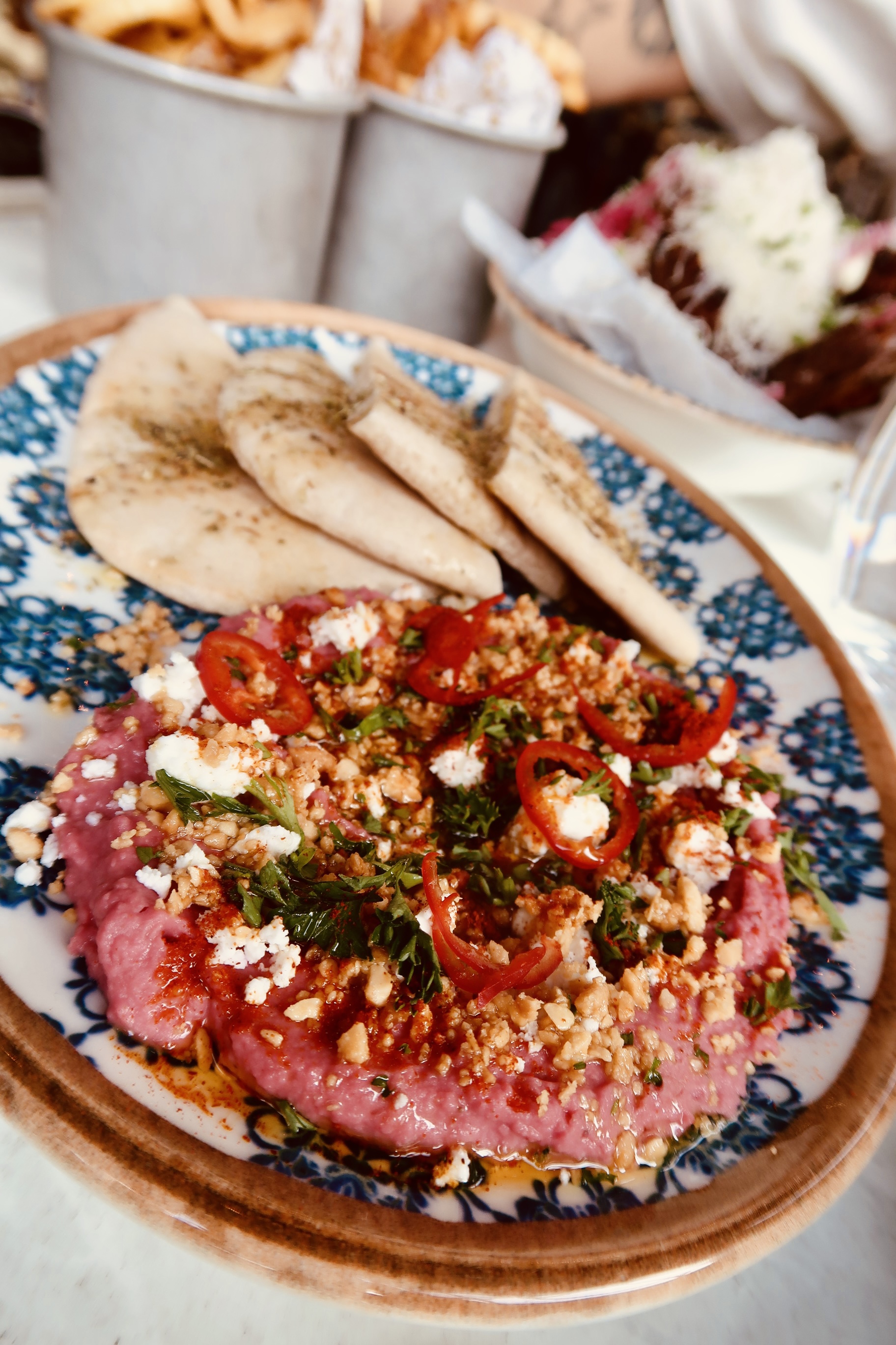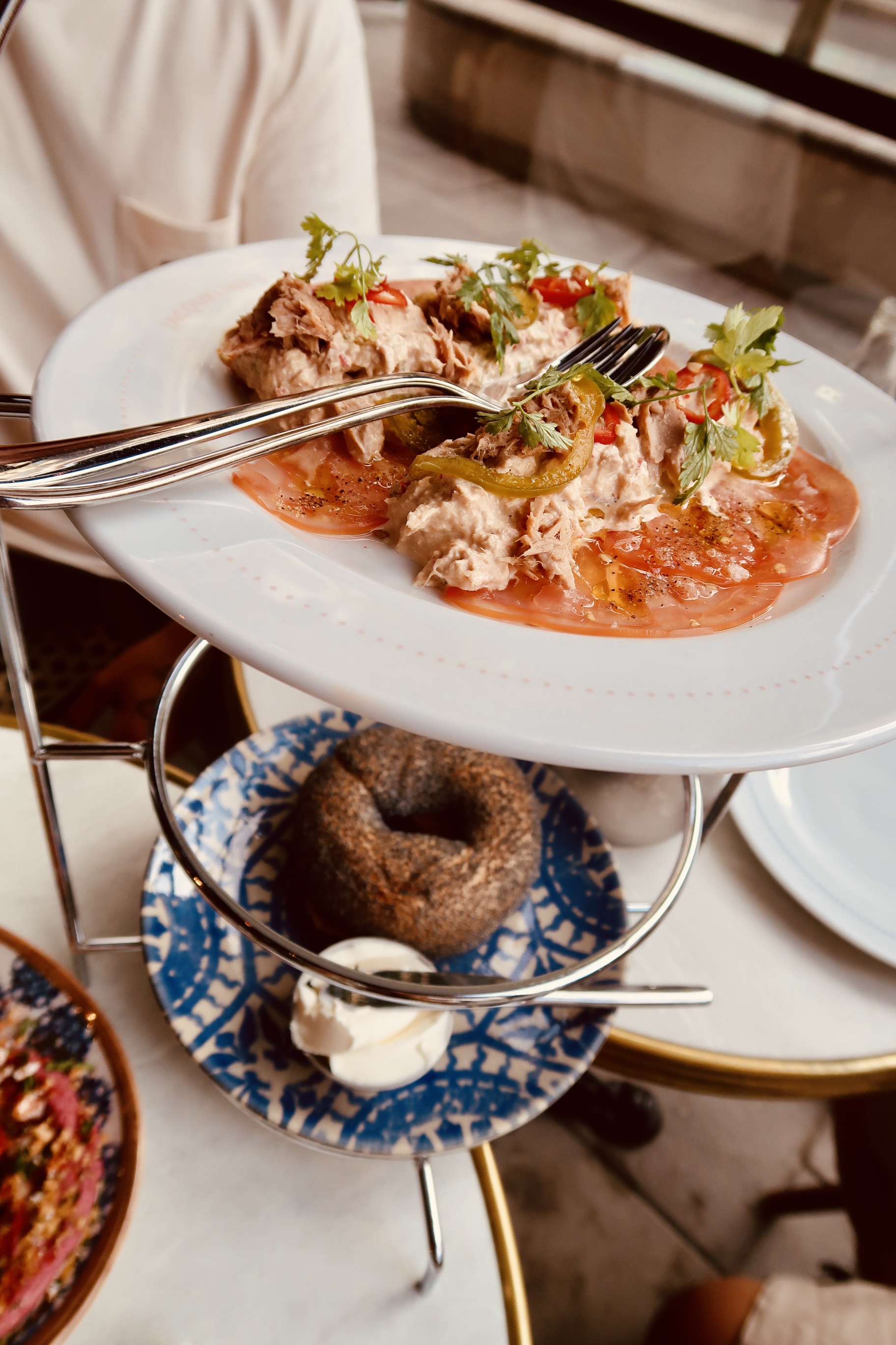 Vi beställde in Burrata, den var bland det godaste jag någonsin ätit. Sååå bra och så god. Tony tog in en rödbetshummus – han satt och mumlade om att det var det godaste han ätit i hela sitt liv. Milo tog en bagel med tonfiskröra som också var supergod. Mätta blev vi även om det inte var planen, svårt att sluta äta när något är sådär gott.