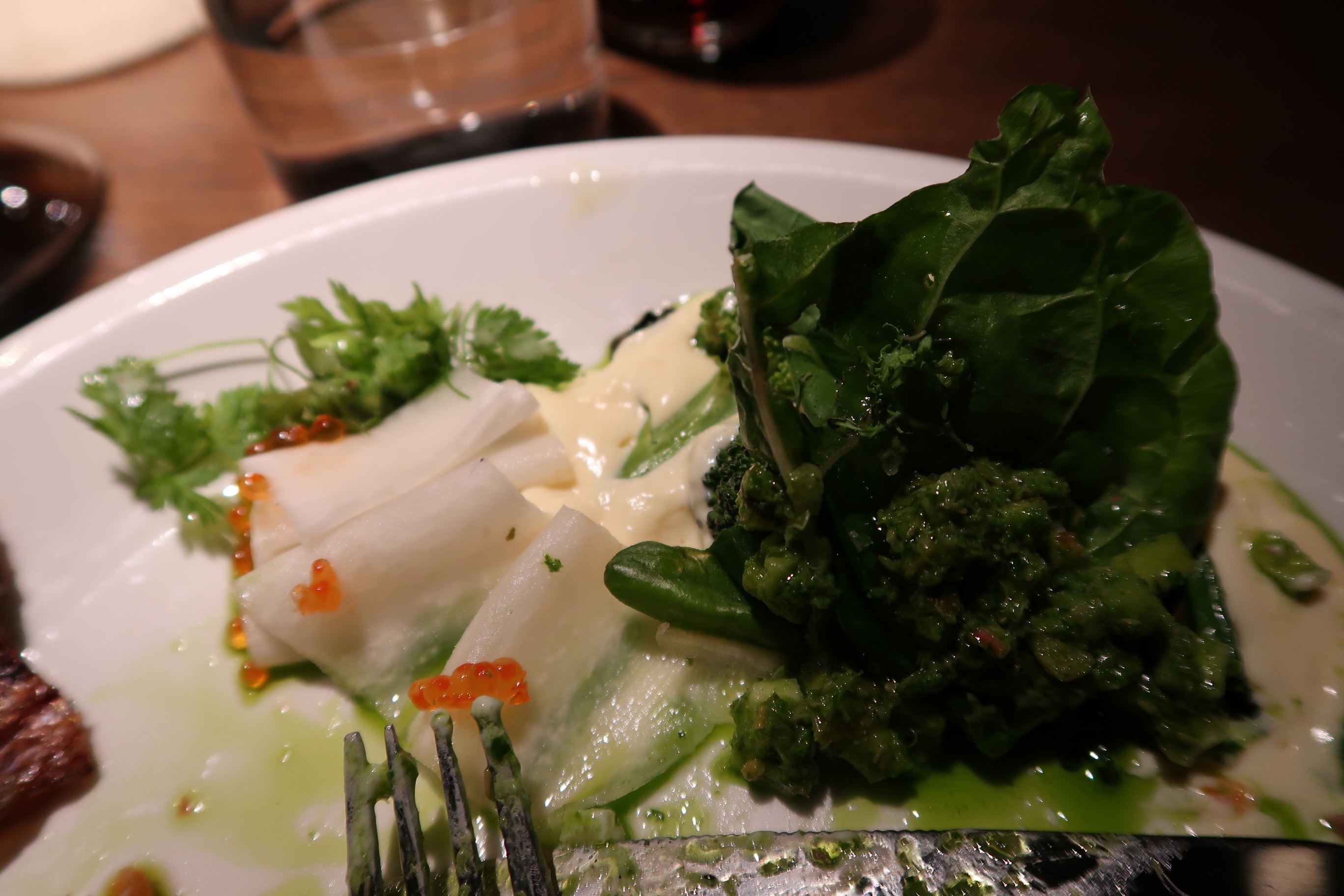 Mums! Maten! Vi åt både burrata (behöver jag säga att jag ÄLSKAR burrata) och lufttorkad skinka med päron till förrätt. Båda svingoda! Till varmrätt tog jag grillad åländsk regnbåge med parmesankräm och pickad rättika bl a. Aaaaasgott! Den picklade rättikan var verkligen sååå såå god till fisken, som en pigg uppstickare till den milda fisken. Tony tog hängmörad biff med löktarte, köttet var perfekt och löktarten var jättegod med härliga smaker. Milo tog pasta i form av ricottagnocci som var magiskt god enligt honom, så krämig och jättegod smak. Det är bra betyg!