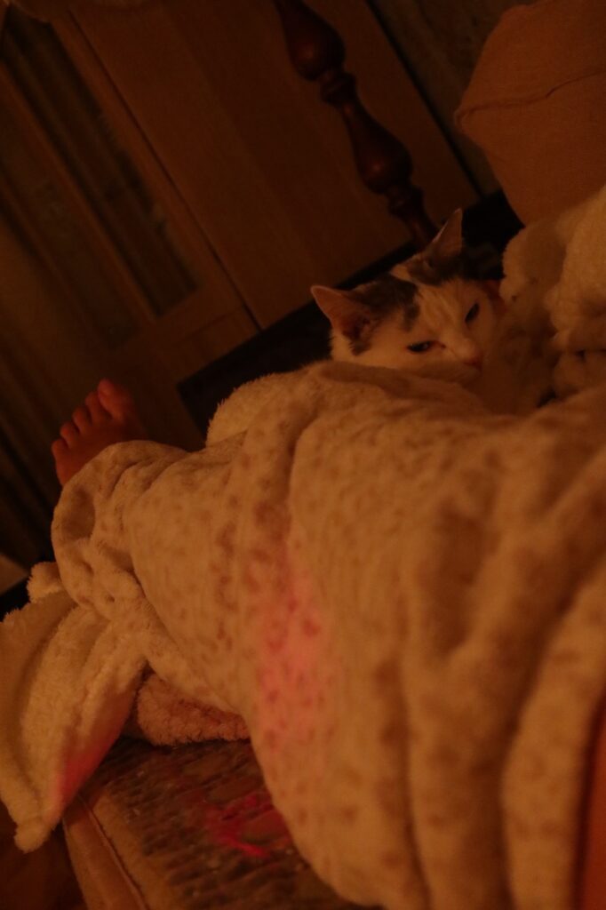 Majlis katten ÄLSKAR madrassen också, så fort jag sätter igång den så kommer hon skuttande. Jag ligger ju på den varje morgon, upplever att jag får en så himla bra start på dagen. Nattens stelhet bara försvinner och jag får en redig värmebehandling av kroppen. Ljuvligt om du frågar mig.