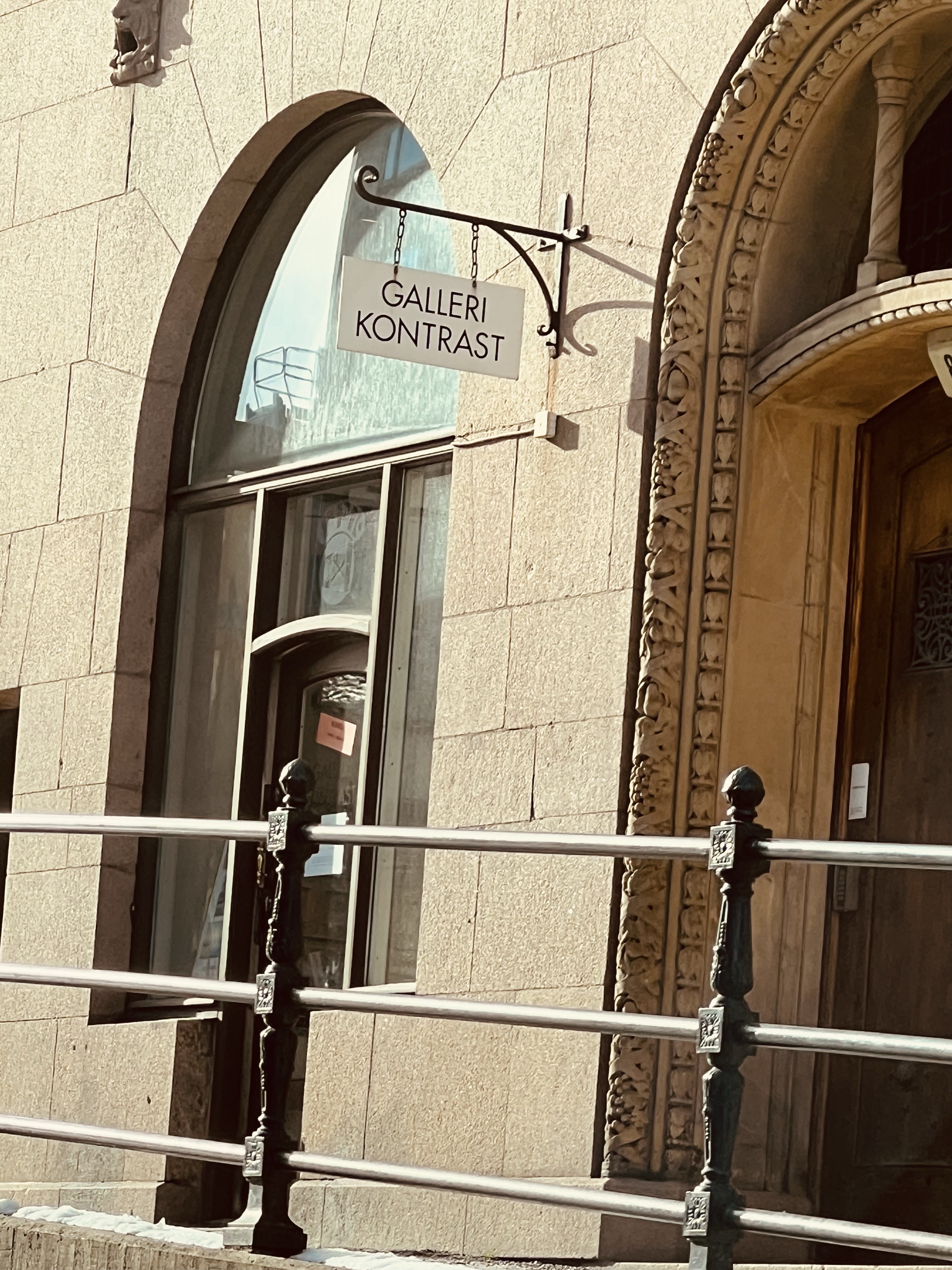 Galleri Kontrast på Hornsgatan. Alla vackra mönster i stenen på huset är verkligen otroligt.