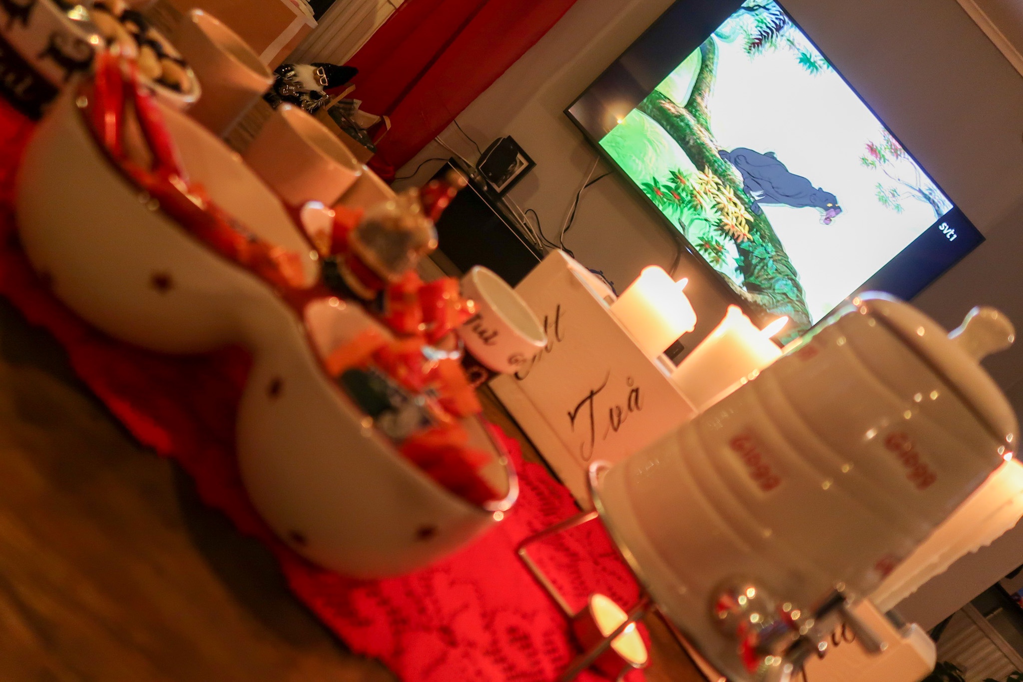 Började med glögg och Kalle Anka såklart. Alltså, alkoholfri glögg kan jag dricka en hel flaska av. Sååå gott! Dröm att äta tillsammans med saffranssnittar eller en lite uppvärmd saffransbulle med vaniljfyllning. Tycker det är gott med choklad också. Vi köpte förresten en glögg med choklad och chili på ICA, den var jättegod.