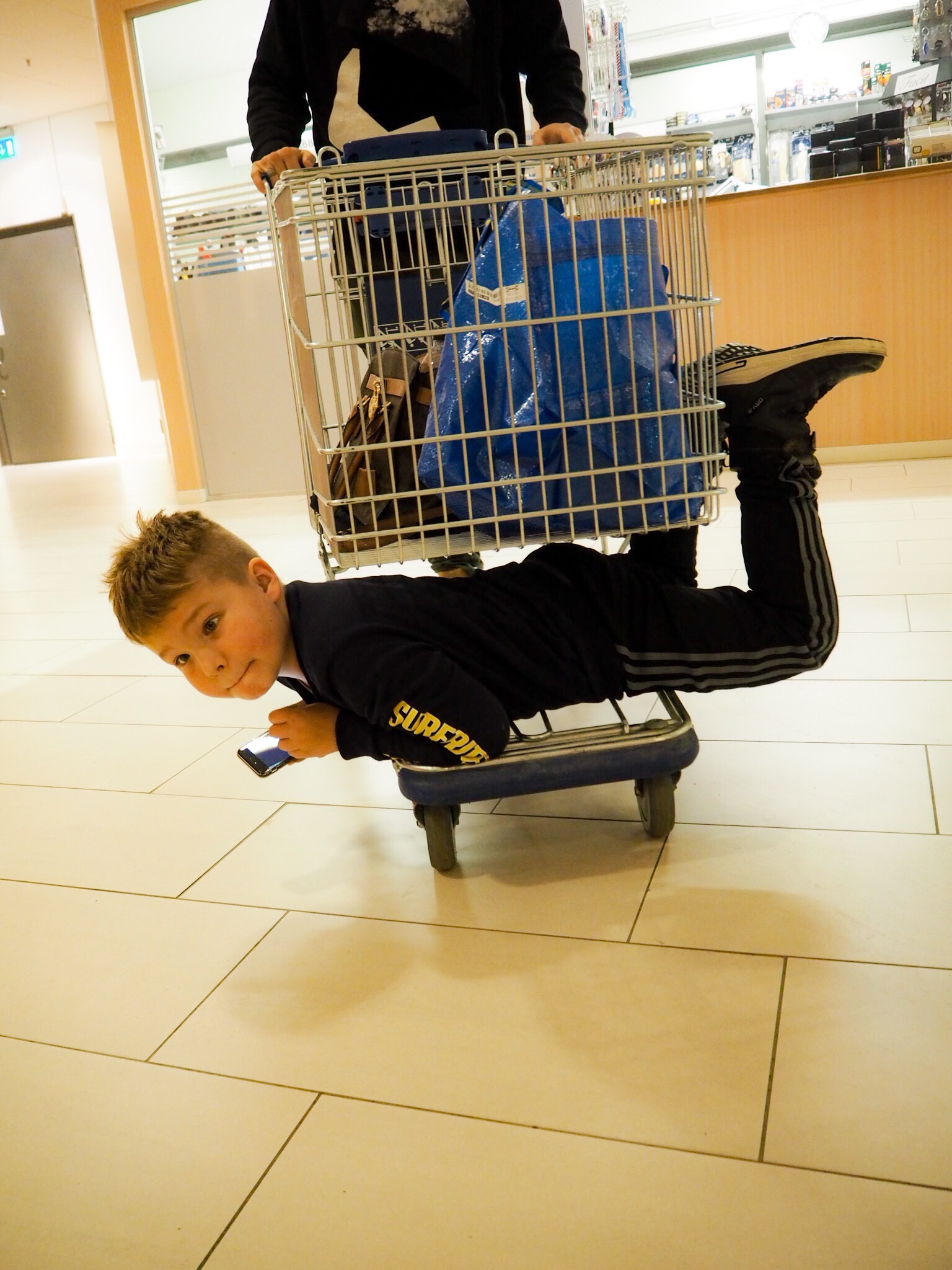 På eftermiddagen sen kvistade vi till Västerås. Nya pjäxor och ryggskydd till Milo skulle inhandlas. Blev de där svarta med märket HEAD.