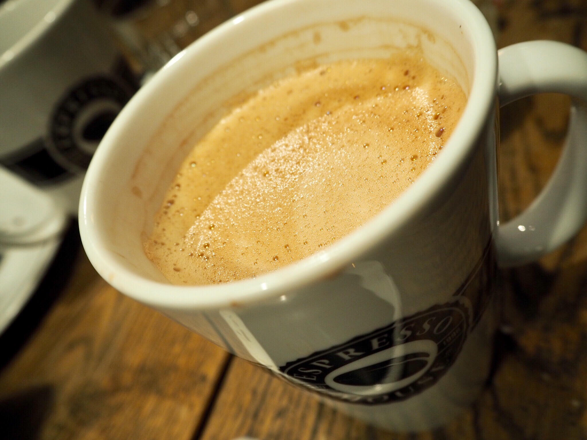 Vi lyckades till slut hitta ett Espresso House som det fanns 1 bord ledigt på. Jag njöt så sjukt mycket av en varm choklad gjord på havremjölk. Mums vad gott det var. Hoppade grädden dock.