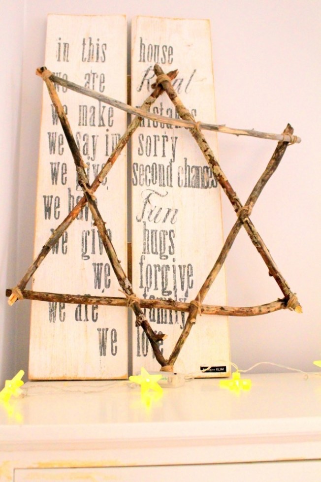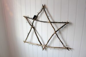 Det enda du behöver är 6 st kvistar i ungefär samma storlek. Hampasnöre och ljusslinga. I år ska jag göra en igen men i år ska jag ha i många ljusslingor så den lyser sådär superhärligt!