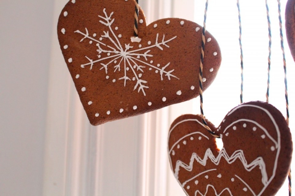 Baka stora pepparkakor och gör hål i. Trä igenom snöre och dekorera fönstrena med hängande fina pepparkakor. HÄR hittar du tips på hur du kan dekorera dem. HÄR hittar du perfekta receptet på proparkaksdeg.