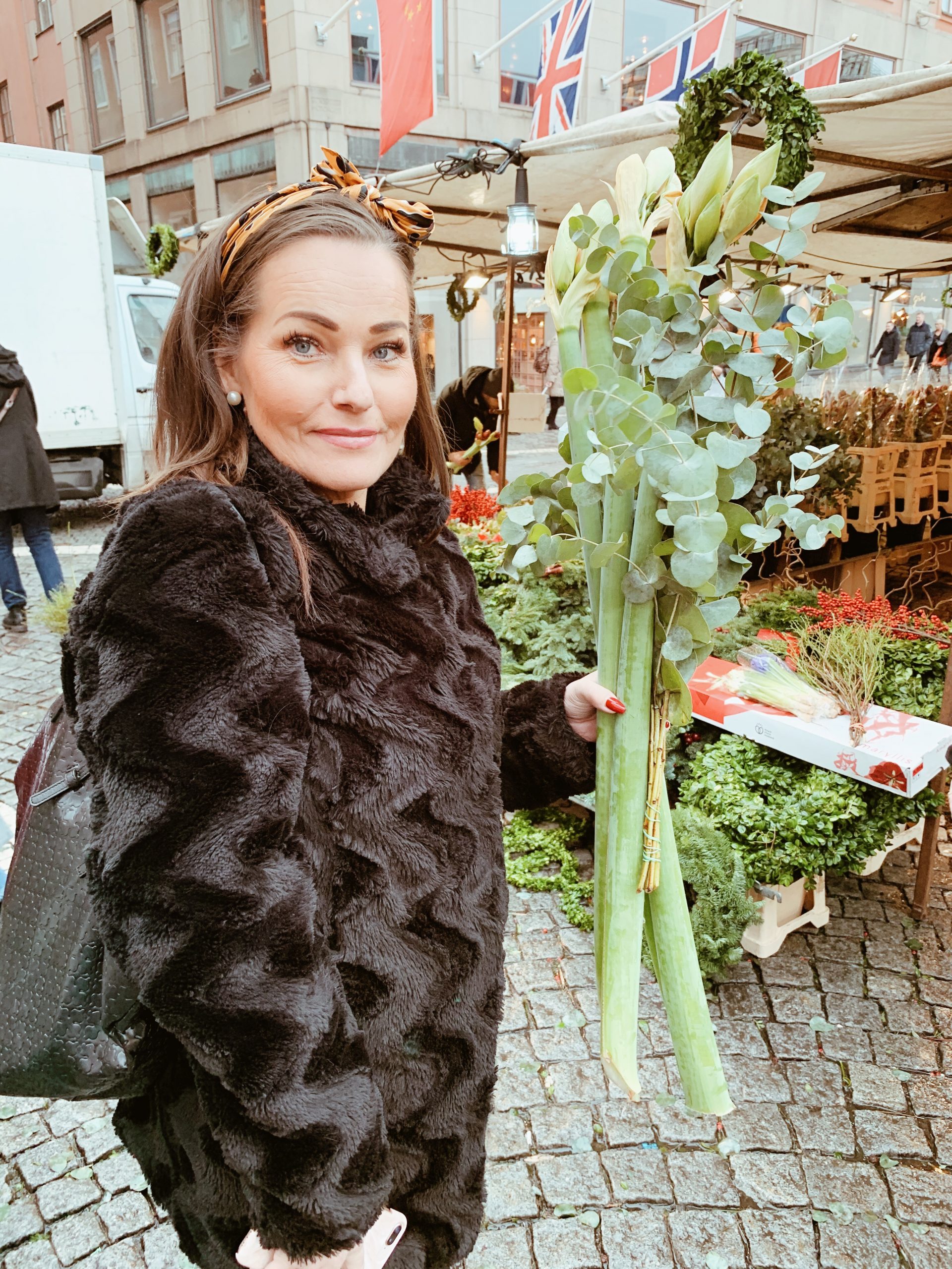 Nu har jag just köpt med mig denna blombukett med gigantiska aprikosa amaryllis med en bukett med eukalyptus. Ytterligare en sak som kommer ge julkänsla och njutning. Ska ställa den strategiskt mitt på köksön så jag ser den hela tiden.