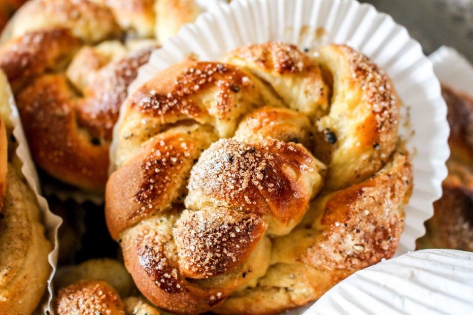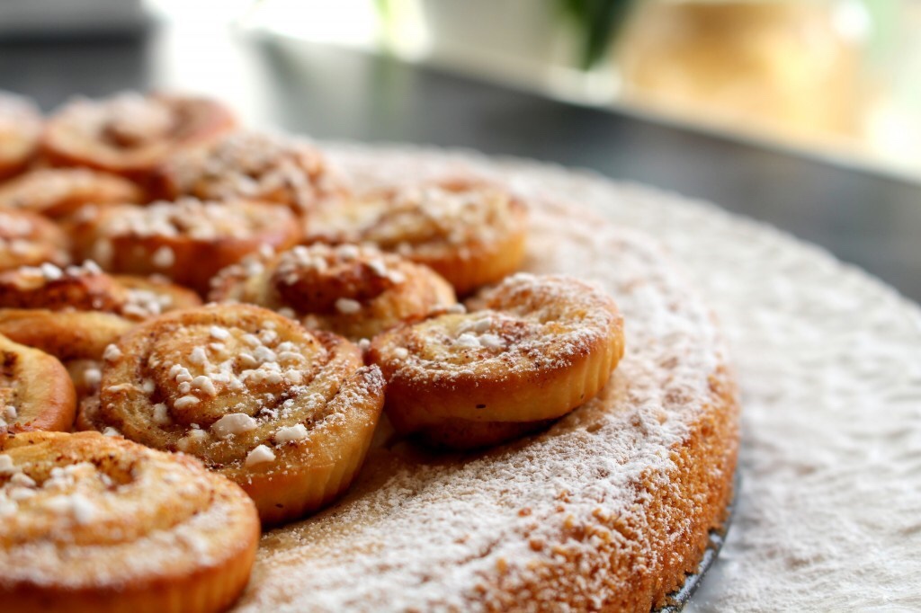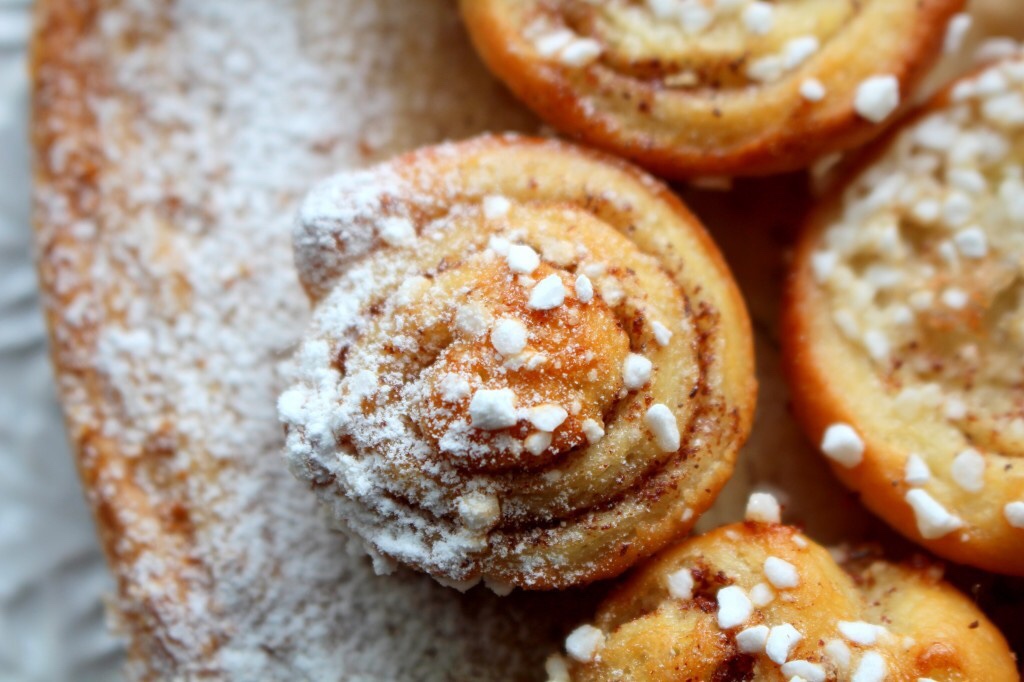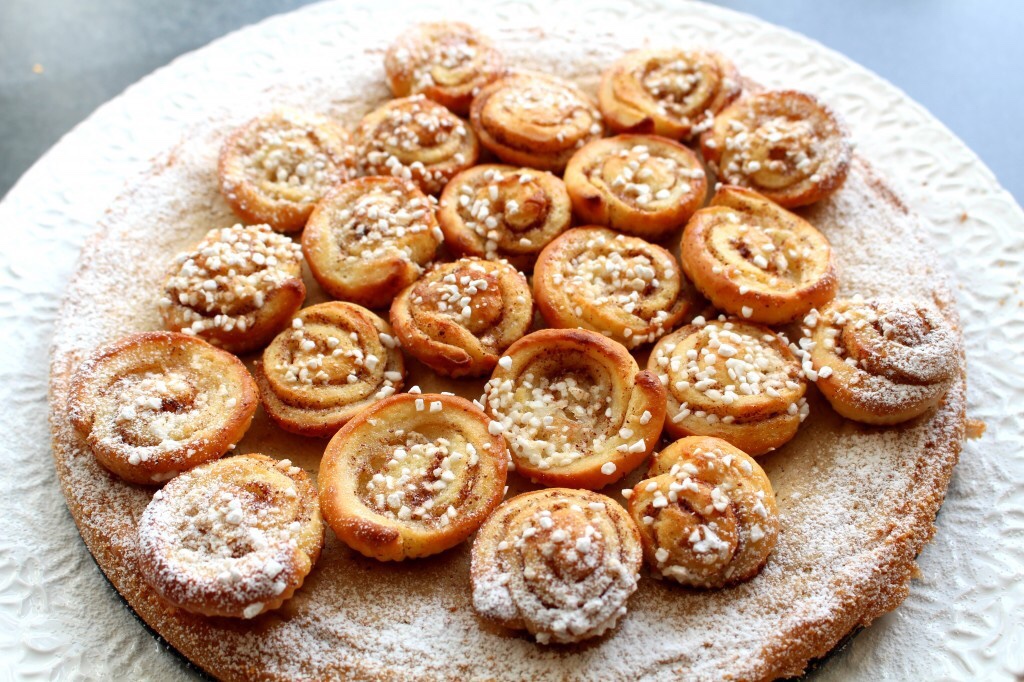 Börja med att baka bullarna. Jag gjorde det samtidigt som jag bakade vanliga bullar. Dessa bullar är gjorda i ministorlek, tänk dig att de ska vara lika stora som småkakeformar. Jag bakade efter mitt bästa kanelbullsrecept.