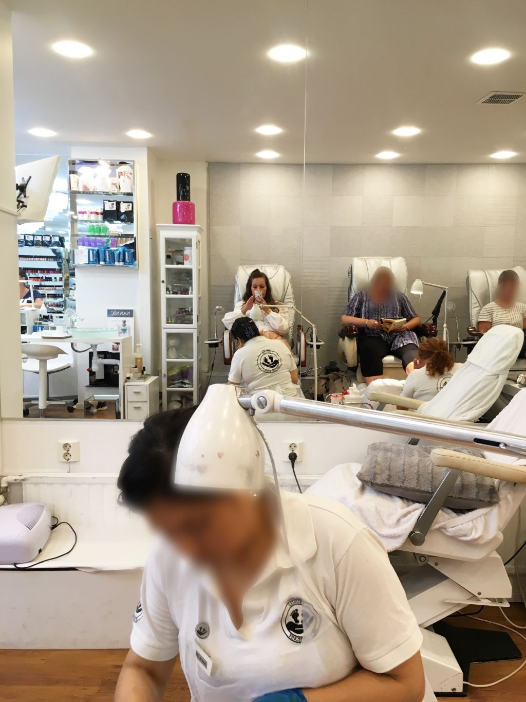 Här satt jag och fick fossingarna fixade. För första gången i mitt liv också. Har aldrig varit på fotvård! Haha… hon var så gullig hon som fixade. Hon tyckte nog det var lite smått fantastiskt att jag aldrig gjort fotvård. Jag har ju typ bebisfötter, aldrig haft förhårdnader och sånt, så det fanns inte mycket att fila bort. Dock så var det ljuvligt med allt pill. Nagelband, nagelbädd, massage, scrub och sen tog jag också shellac. Blev såå fint!