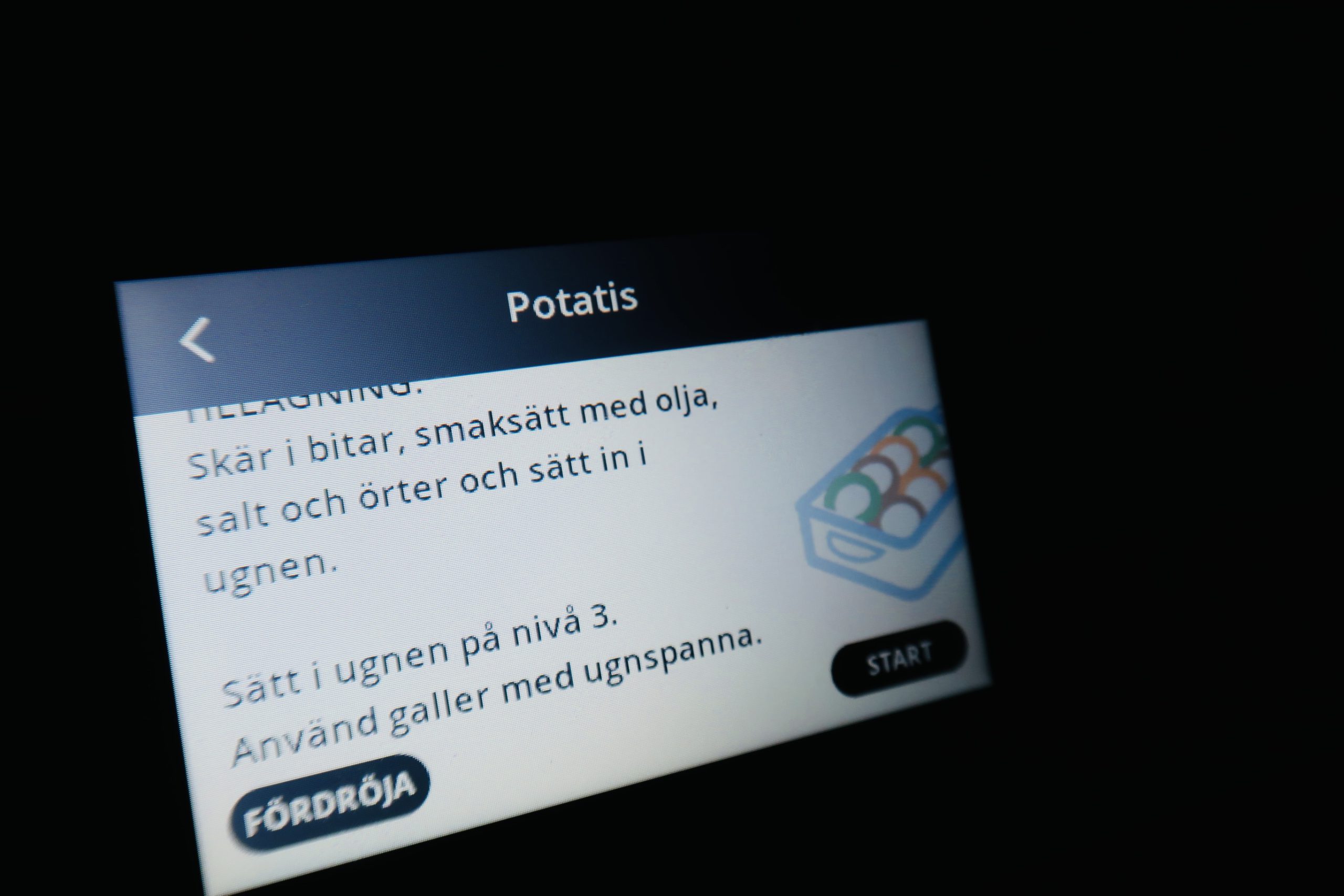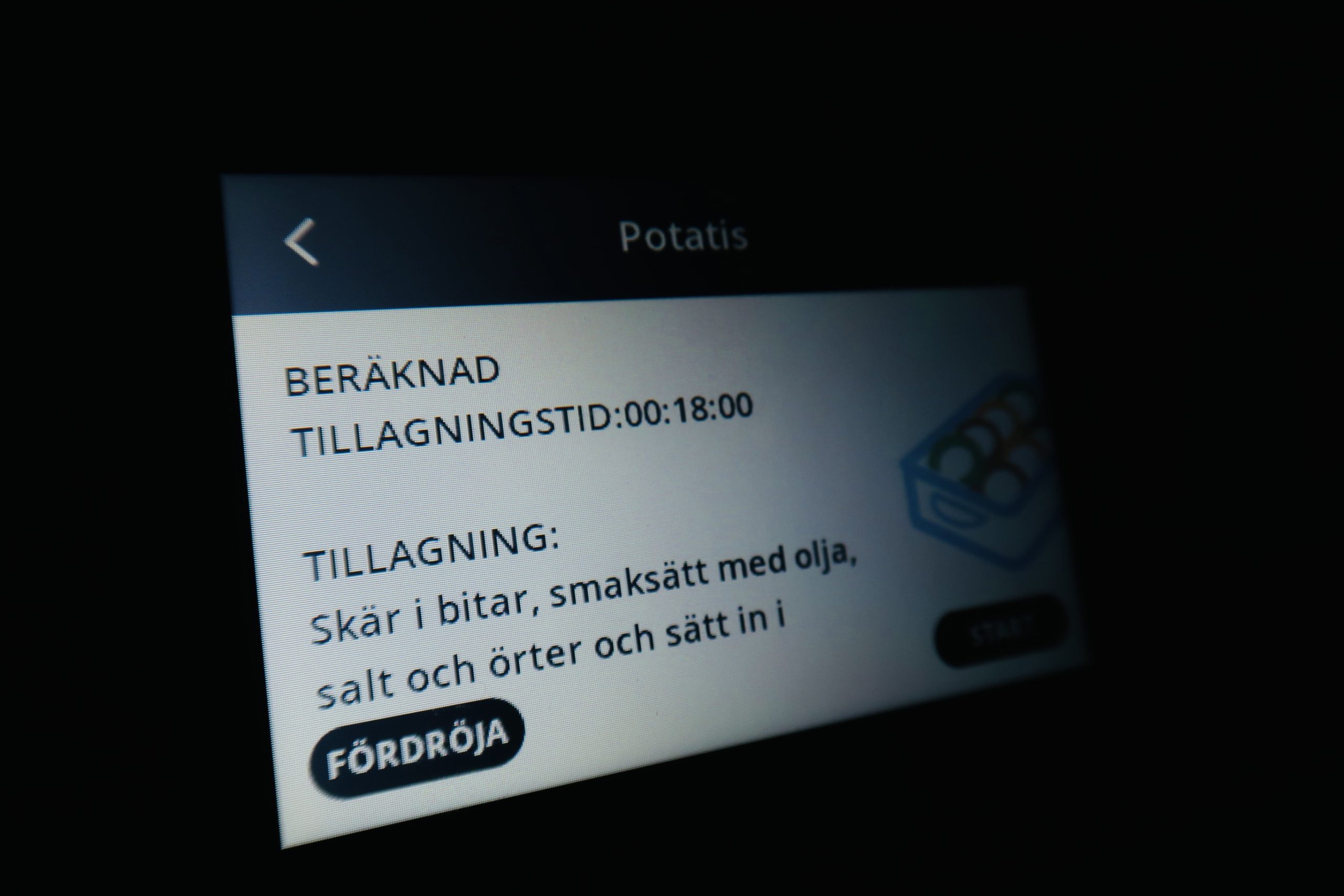 6:TH SENSE inställningarna har färdiga rätter programmerade. Du behöver alltså bara blippa fram till potatis och sen talar ugnen om för dig vad du ska göra. Örter sa den till mig, då kom jag på att jag måste köpa torkad timjan, farligt gott på klyftpotatis. Ok, så skjuts in i ugnen, ugnen vet att det tar ca 18 min för den att tillaga perfekt klyftpotatis.