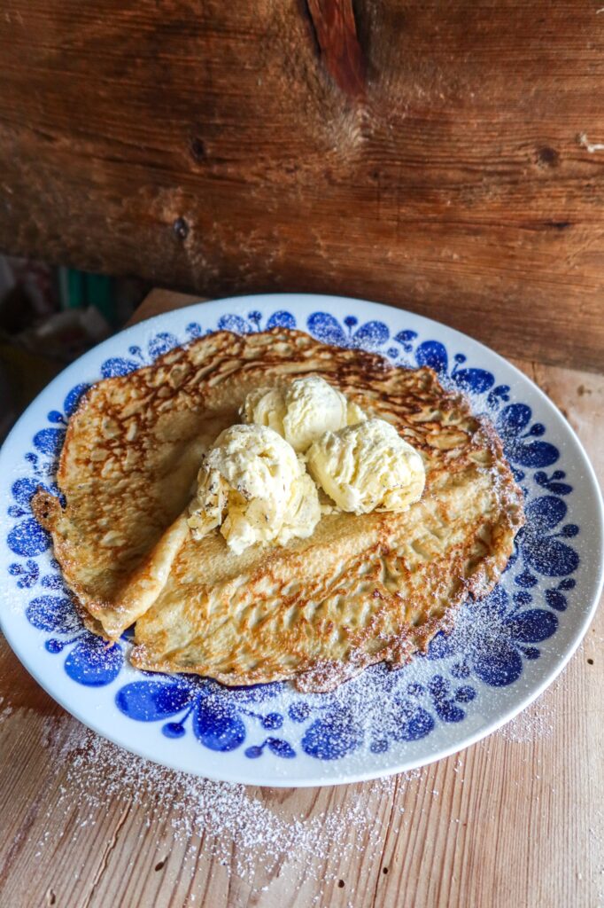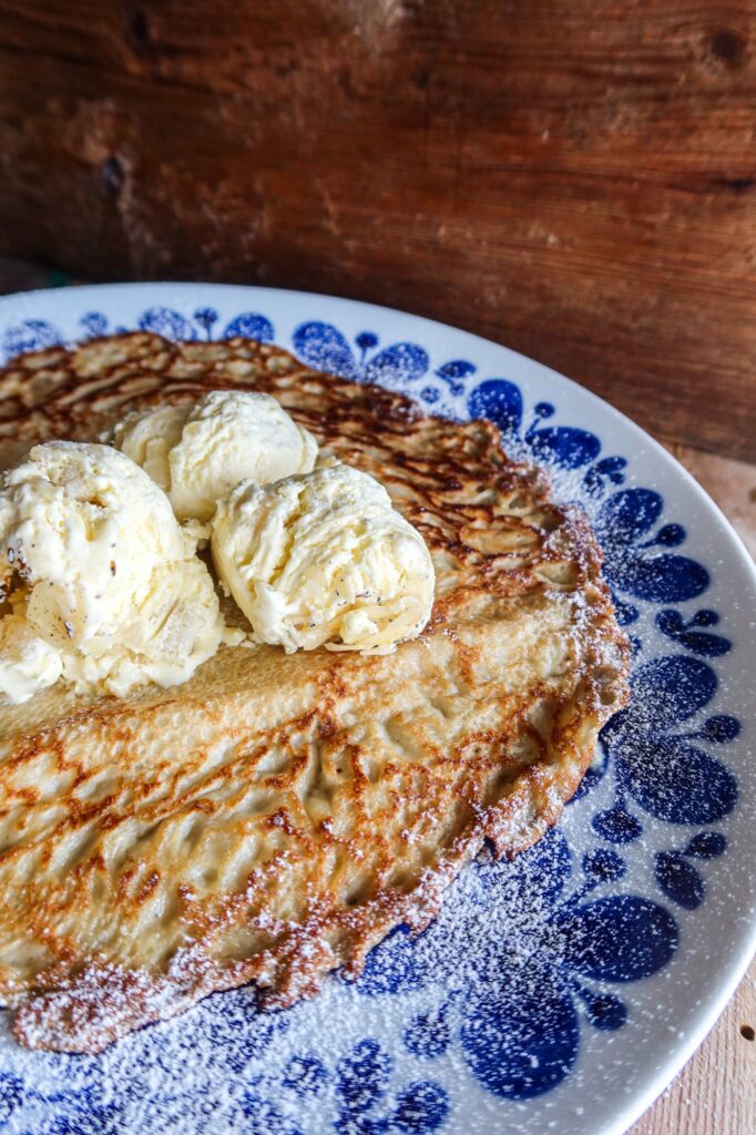 Glutenfria, laktosfria och mjölkfria pannkakor med semmelglass