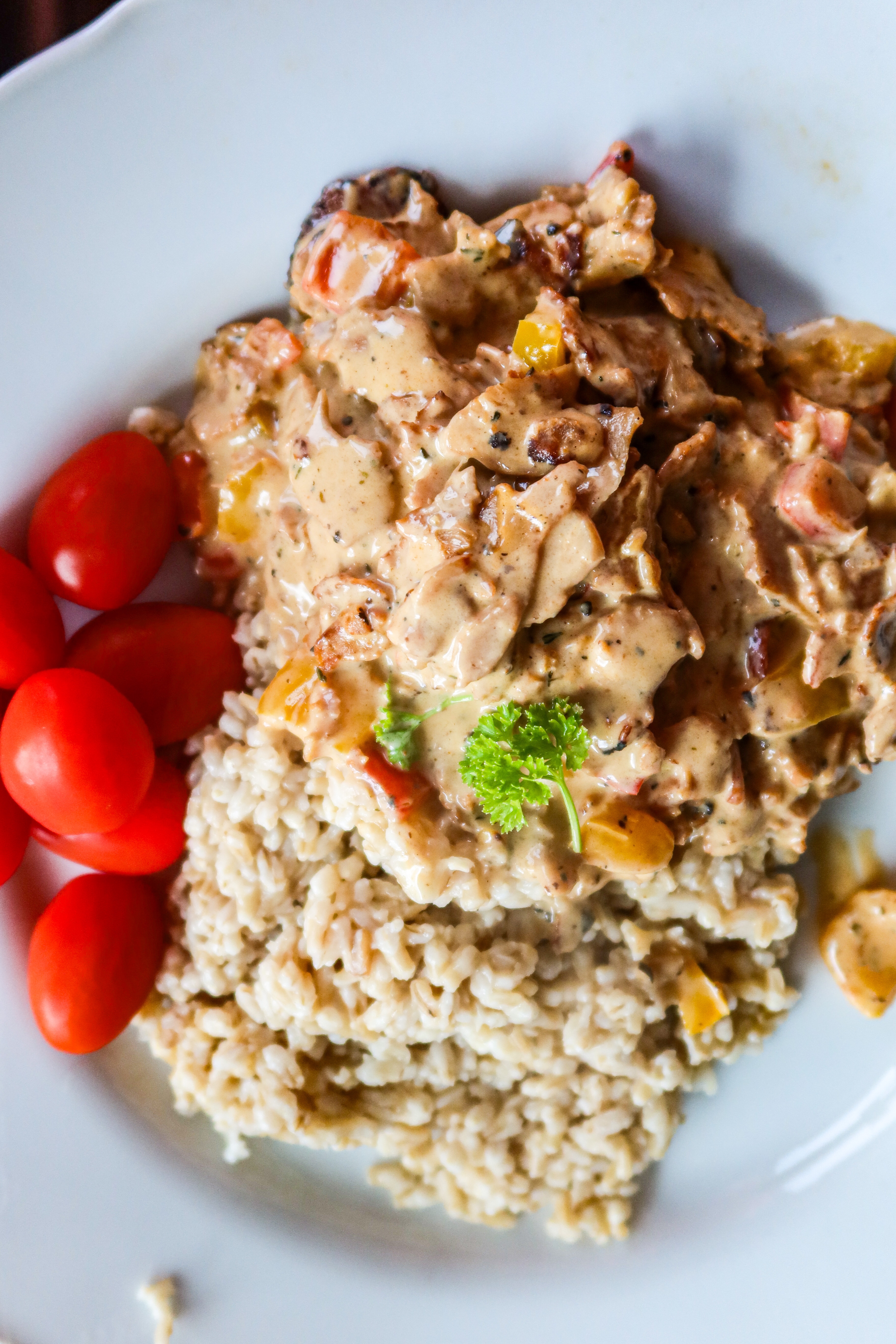 Den här grytan blev krämig, fylld med smaker, sådär som en gryta ska vara enligt mig. jag serverade den med havreris, funkar såklart med vanligt ris, potatis eller varför inte pasta. Minst lika gott!