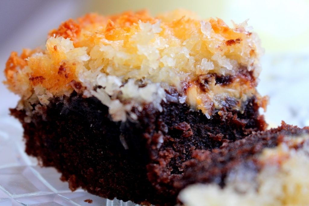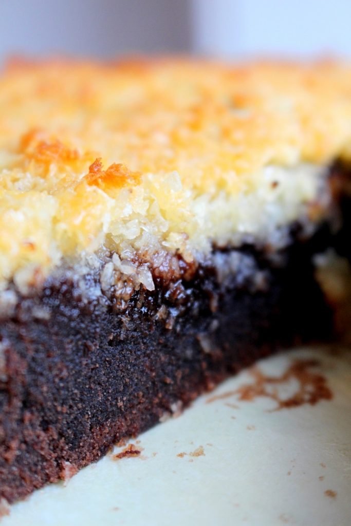 Den här kladdkakan med kokostosca är ”to die for”. Jag kan lova dig att de du bjuder denna på kommer alla att humma högljutt av välbehag, eller så äter du den själv. En kladdkaka som liksom har allt, det här täcket med kokostosca är magi. Kladdig, crunch och choklad i kombo. Vad mer kan man begära? Testa att baka denna kladdkakan med kokostosca, du kommer inte att ångra dig.