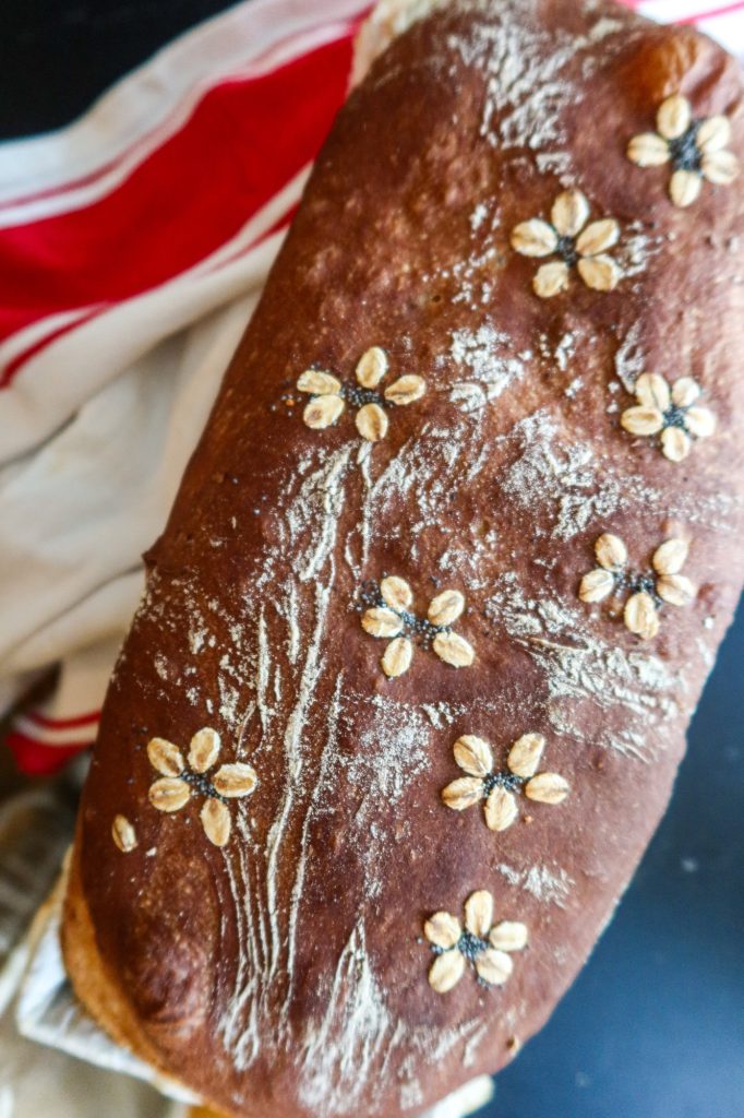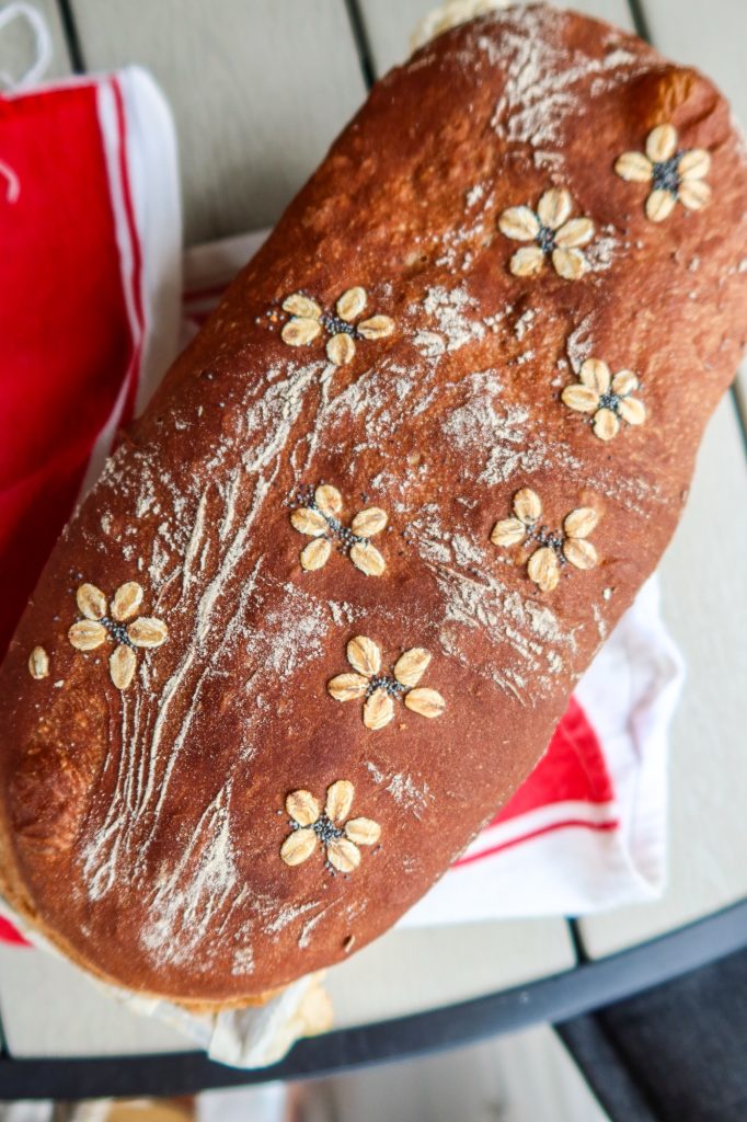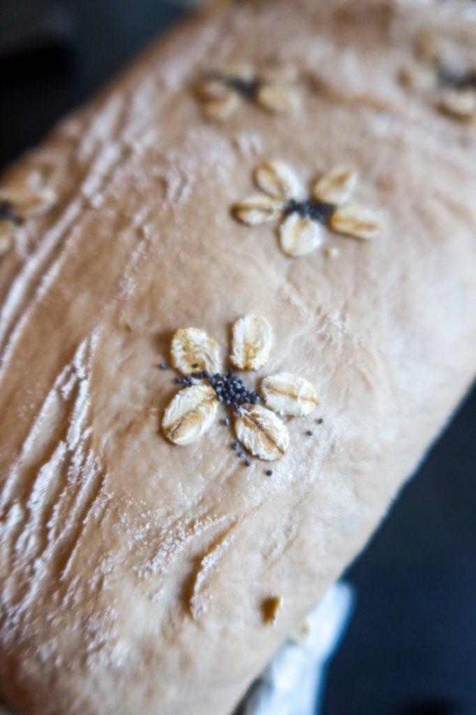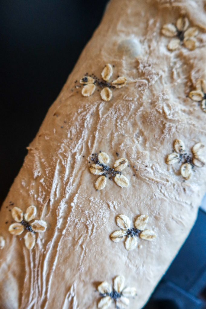 Vill du göra din hembakta limpa extra vacker? Testa att dekorera den med små ”blommor” av havregryn och en prick av vallmofrö i mitten. Så enkelt men ger en riktig wow-effekt på brödet!