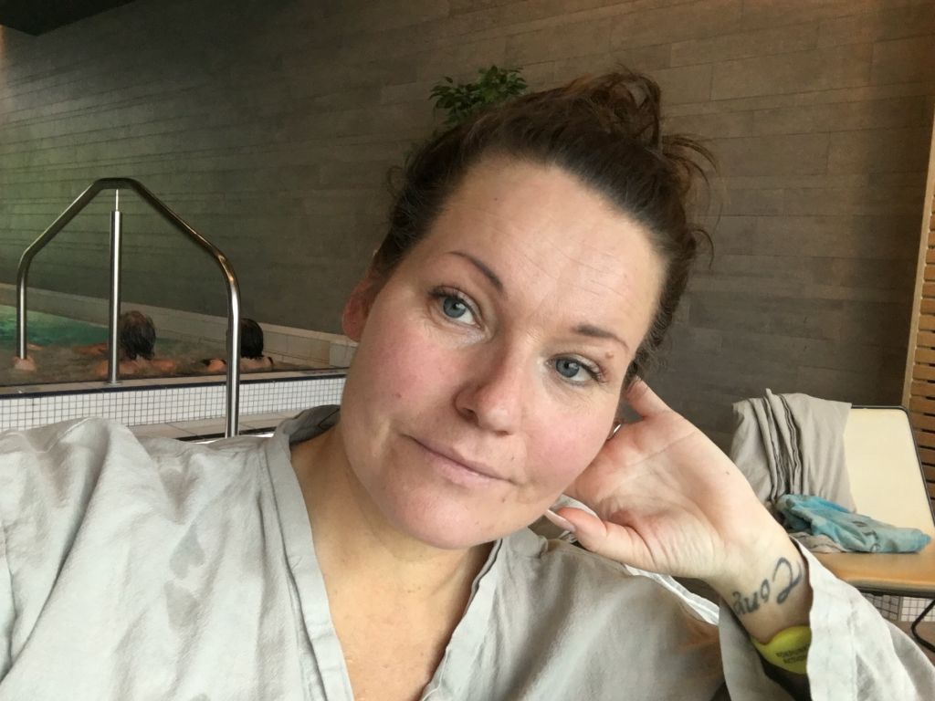 Efter att barnen drog till sitt snörade jag på mig min baddräkt och badrocken som man fick låna och gick till RELAXEN. Kände mig som en super-rookie. Följde skyltarna och råkade hamna i samma hiss som killen som skulle jobba i serveringen just på Relaxen. Han var så härlig, han uttryckte sig som att ”Relaxen kommer passa dig perfekt, du kommer stortrivas, det är sååå härligt” även om vi bara sågs i hissen. Men jag gillar sånt där engagemang. Jag blev ju bara ännu mer sugen liksom.