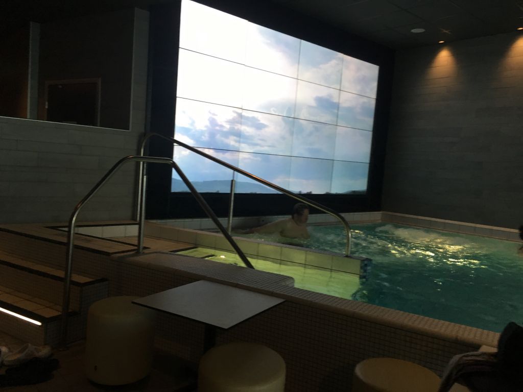 Här satt jag och mös. Varmrummet är som en lite svalare bastu, sådär så man kan sitta lite längre utan och svimma. Det fanns både finsk bastu och ångbastu. Jag testade inte den finska bastun, den får jag så mycket ändå av. Däremot älskar jag ångbastu. Där var det också någon form av arom som sprutade ut. Ljuvligt!