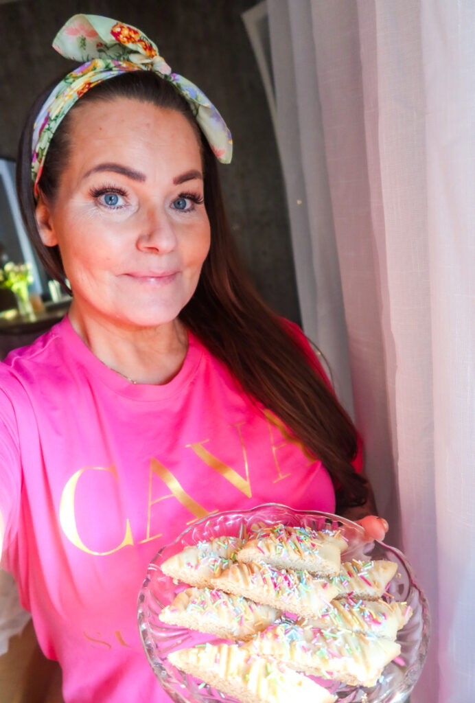 Hörni, igår hade jag en riktig bakdag. Älskar de där dagarna, och du skulle bara se mitt kök. Haha, det är kaos. Ni som minns mig från ”Hela Sverige bakar” minns säkert också att det alltid var total kaos precis vid mitt bord. Mitt sätt att baka på helt enkelt. Igår blev det lite olika kolasnittar, dessa kolasnittar med limeglasyr uppepå och härligt knaprigt strössel kommer passa perfekt till påsk. Blev riktigt goda, jag bakade kolasnittarna med lite mer mjöl för jag ville ha dem nästan som mördegskakor. Och tammetusan att de lyckades perfekt! Du måste testa dessa kolasnittar, limeglasyren och strösslet uppepå blev bara för bra! De bara smälte i munnen, blev sådär löjligt gott så det var absolut omöjligt att bara njuta av en kolasnitt.