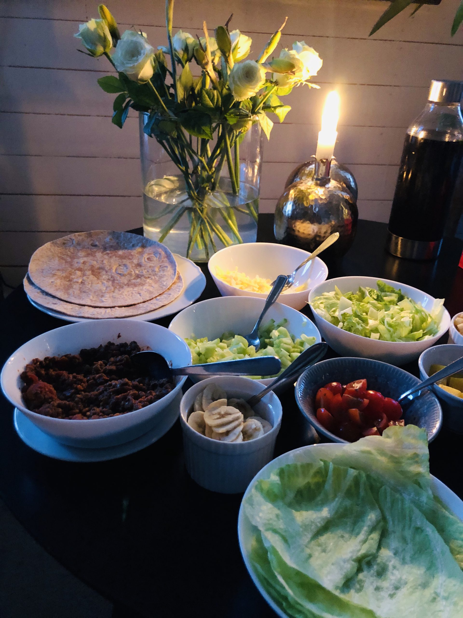 Vi åt en sen Tacos framför Sveriges Yngsta Mästerkock. Mysigt och så extremt gott var det igår. Åt så jag höll på att spricka. 😅