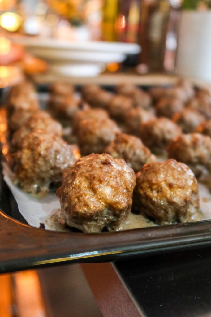 När min äldsta var hemma på besök från Schweiz så hade han en maträtt högst upp på önskelistan! Köttbullar! Haha, det finns en hel del mat som han saknar då han bor i Schweiz och köttbullar är en av dem. Köttbullar med gräddsås, lingon och potatis var önskemålet. Köttbullar i ugn tycker jag blir allra bäst, jag förberedde dem på morgonen (rullade och tillagade i ugnen) och sen stekte jag på dem i rejält med smör just innan vi skulle äta. Det här receptet på köttbullar i ugn blir så himla bra, så tips tips till julen tänker jag.
