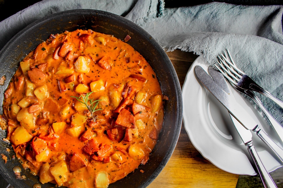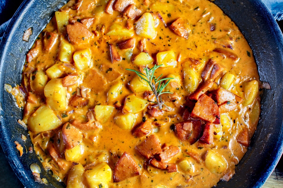 KRÄMIG KORV OCH POTATISGRYTA, 4 port